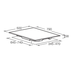 Cut-Out Dimensions (WxDxH): 645 - 768mm x 345 - 488mm