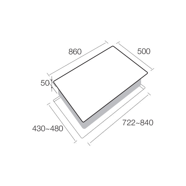Product Dimensions (WxD): 860mm x 500mm