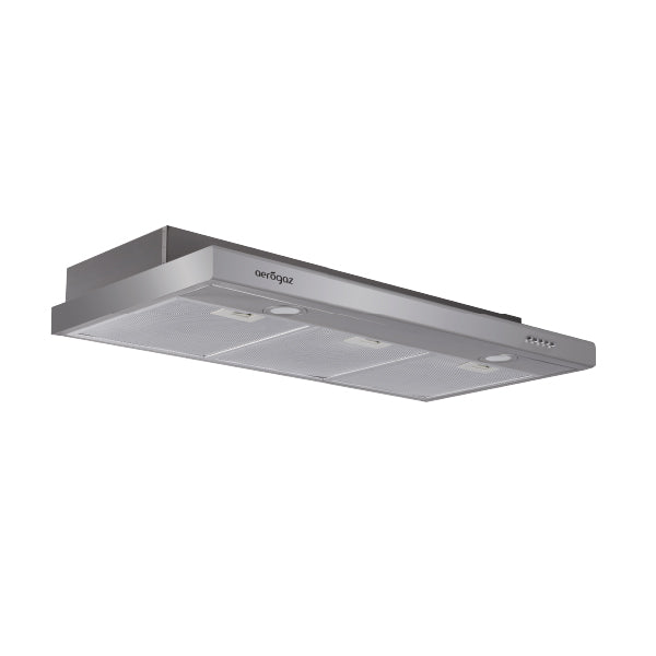 Experience powerful ventilation in a sleek design with the Aerogaz AZ-9700 90cm Slimline Hood. Ideal for modern kitchens, it features dual motors, push-button controls, and efficient aluminium filters—ensuring clean, fresh air while cooking. Its compact build combines style and performance, perfect for maximizing kitchen space.