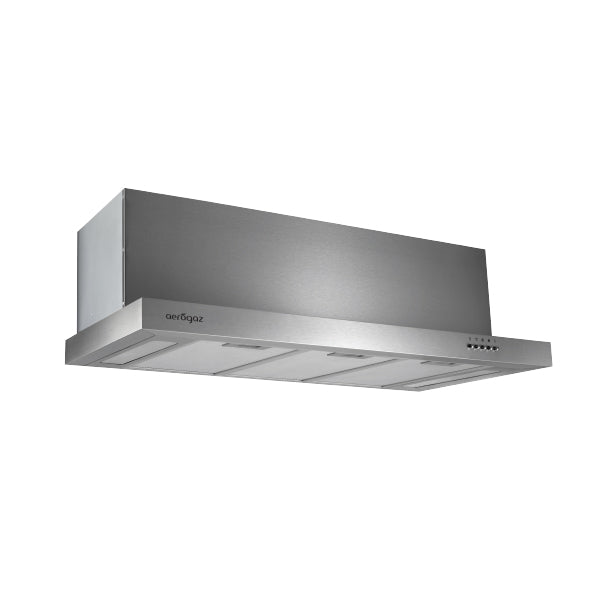 The Aerogaz AZ‑9800 is a 90 cm stainless‑steel telescopic hood featuring three-speed controls and up to 700 m³/h extraction capacity. Equipped with dual 40 W incandescent lamps, aluminium grease filters, push‑button operation, and recirculation mode, it delivers powerful, stylish ventilation for contemporary kitchens. Efficient, clean, and discreet.