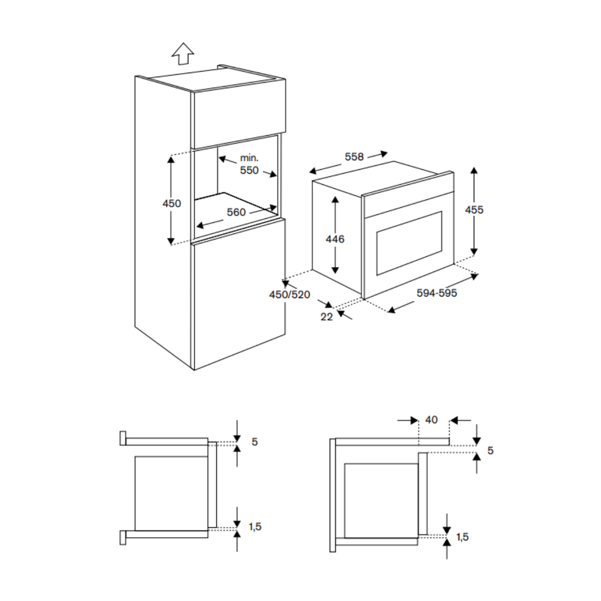- O-shape anti-fingerprint steel oven door frame with 2 glasses, Energy Class A
