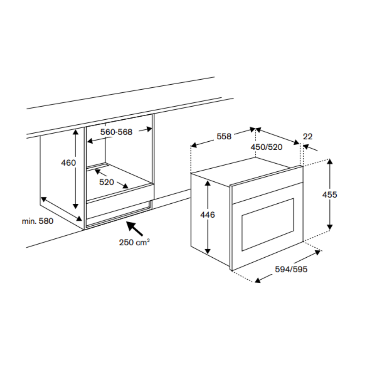 Dimension of product (mm): H595 x W455 x D520