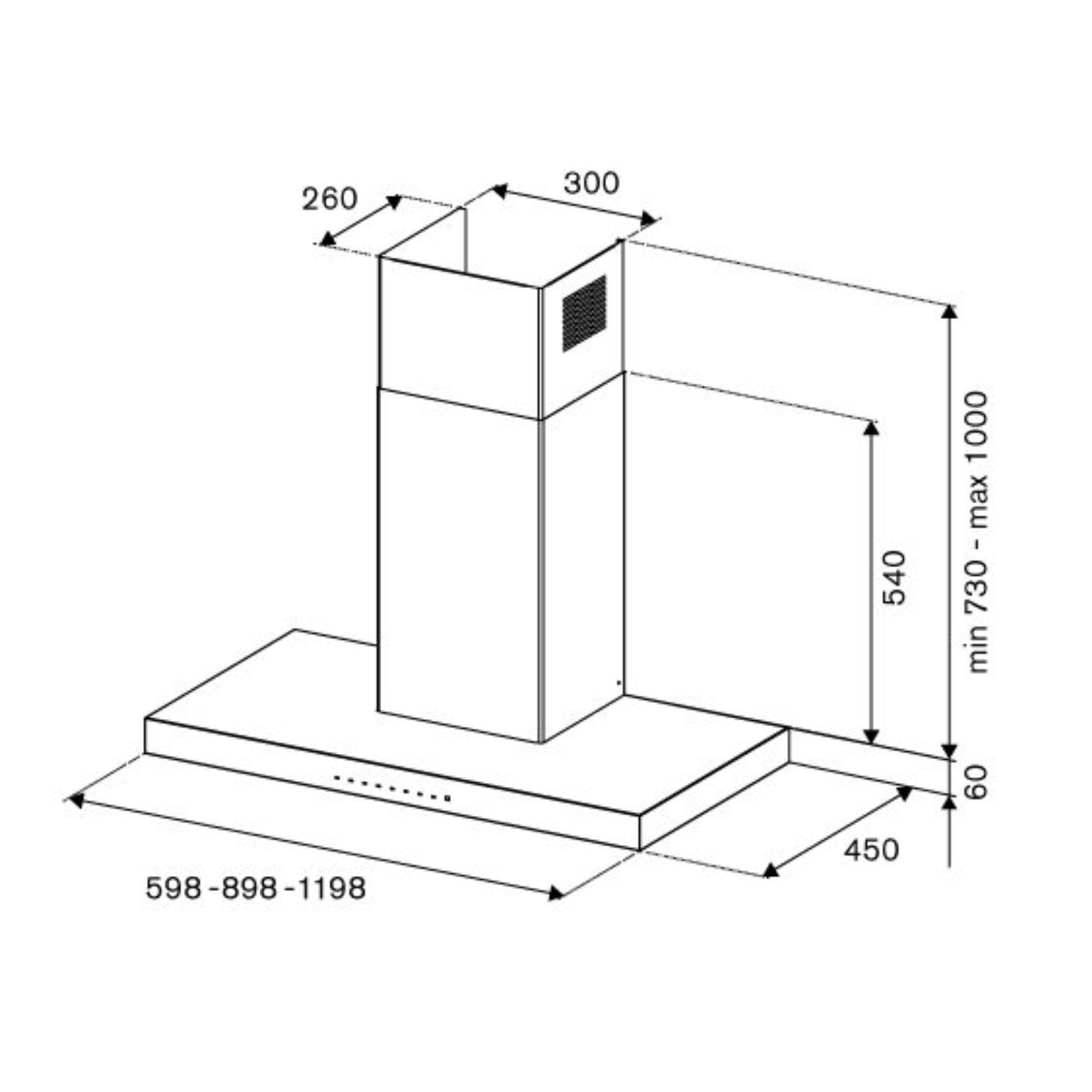 Introducing the 90cm wall-mount hood, featuring a single motor with three speeds and effective stainless steel filters for efficient extraction. Easily adjust settings with electronic controls and LED display, complemented by two bright LED lights for enhanced visibility. With a powerful motor extracting up to 750 m3/h and an A+ energy class rating, it ensures effective ventilation with energy efficiency.
