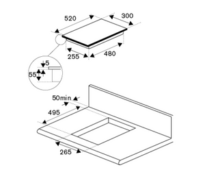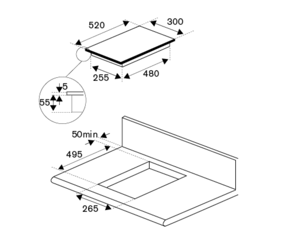 Cut-Out Dimensions (WxD): 265 x 495 mm