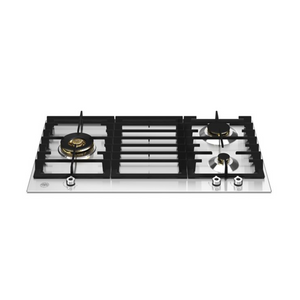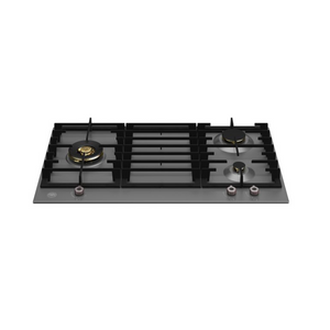Introducing the Bertazzoni Professional Series 90cm gas hob, offering three brass burners with precise metal control knobs for versatile cooking. Experience category-leading time-to-boil performance with sealed power burners and dual ring flames. Safety features include thermocouple devices on every burner, while cast iron pan supports ensure stability. Available in stainless steel and matt black with titanium knobs.