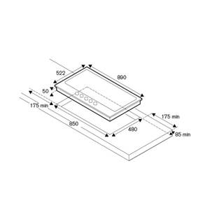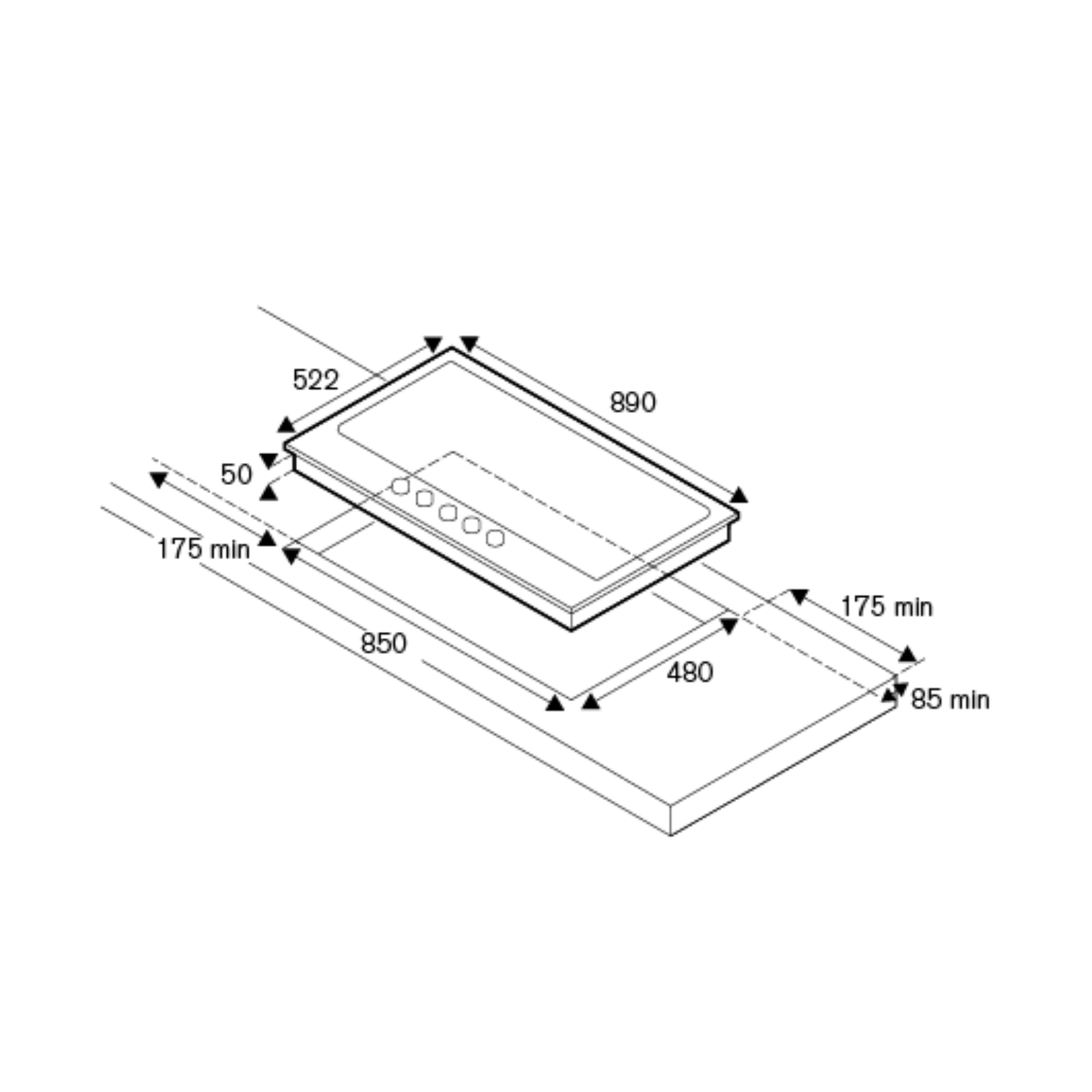 Cut-Out Dimensions (WxD): 850 x 480 mm