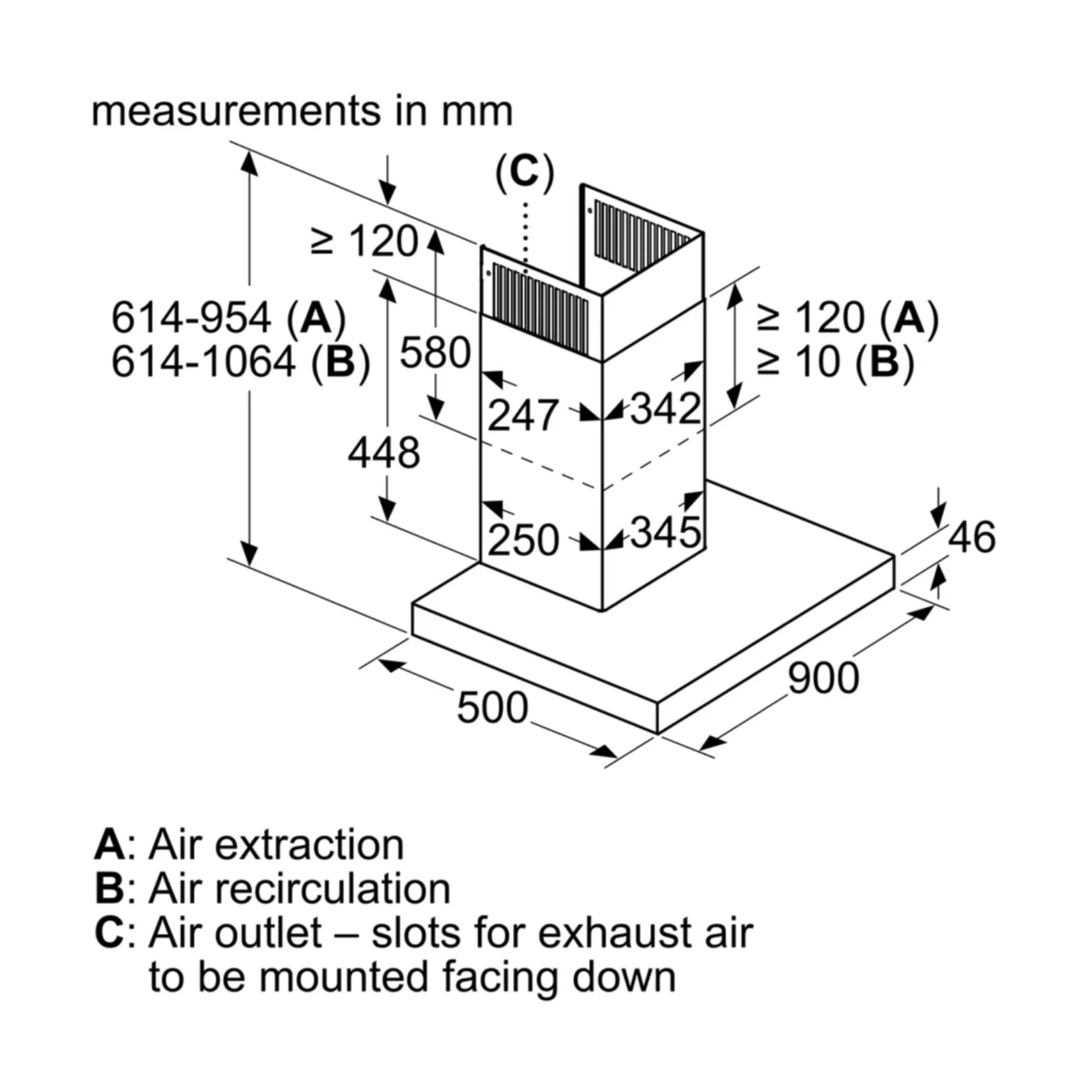 BOSCH DWP97BC50B - 90cm Stainless Steel Wall-mounted Hood