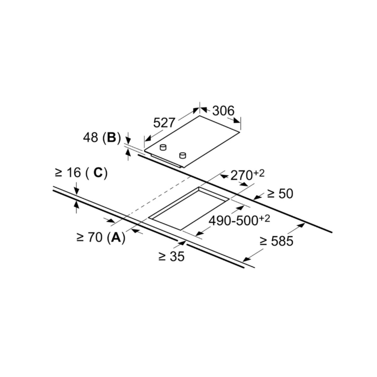 Cut-Out Dimensions (WxDxH): 2270 x 490 - 500 x 48mm