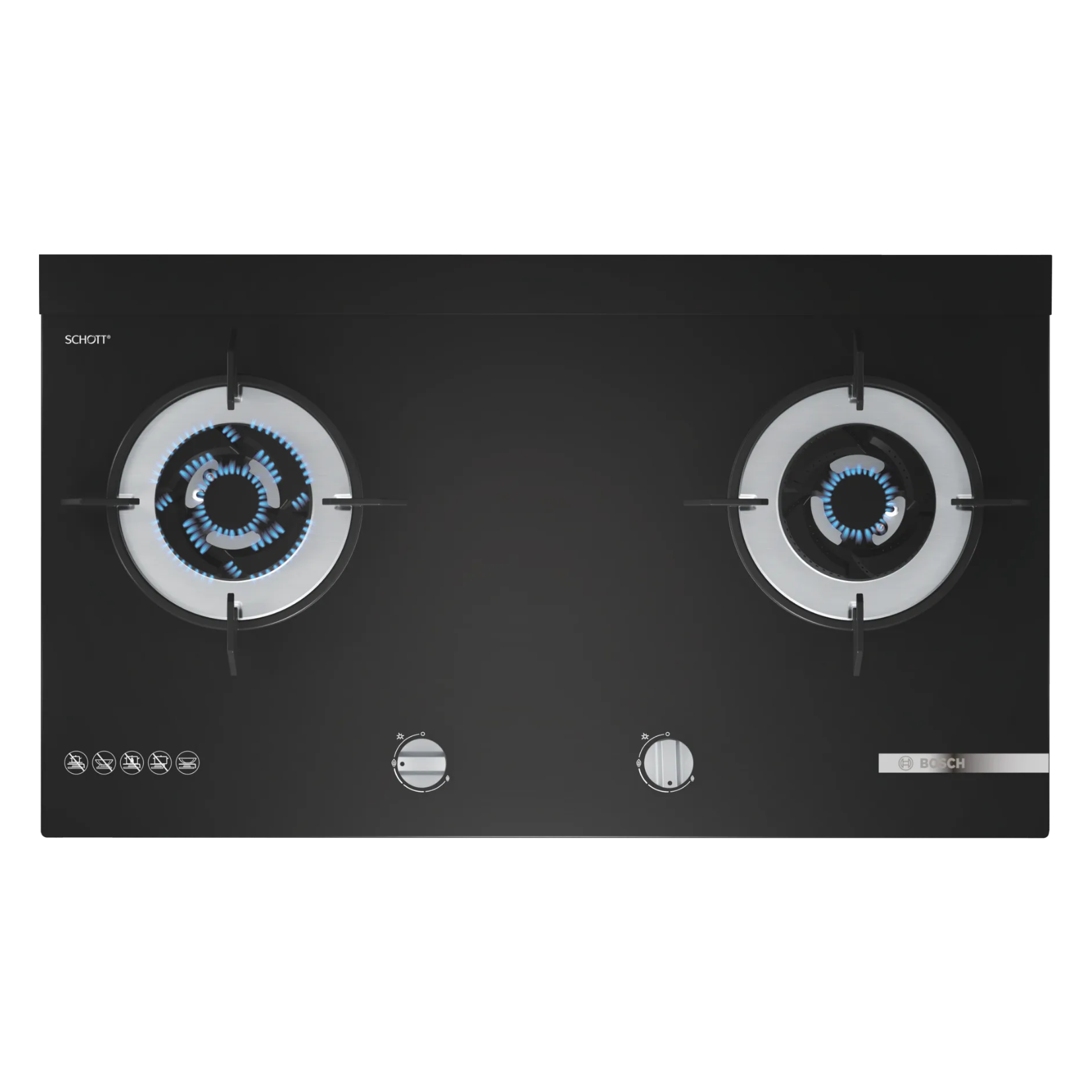 The Bosch PMD82D31AF is a refined 78 cm tempered‑glass gas hob featuring two high-power burners (up to 5 kW each), ergonomic sword‑style knobs with built‑in ignition, and flame‑failure safety. With enamelled pan supports, tilt‑&‑stay legs, and a seamless, easy‑clean design preset for town‑gas, it brings performance and style to your kitchen.