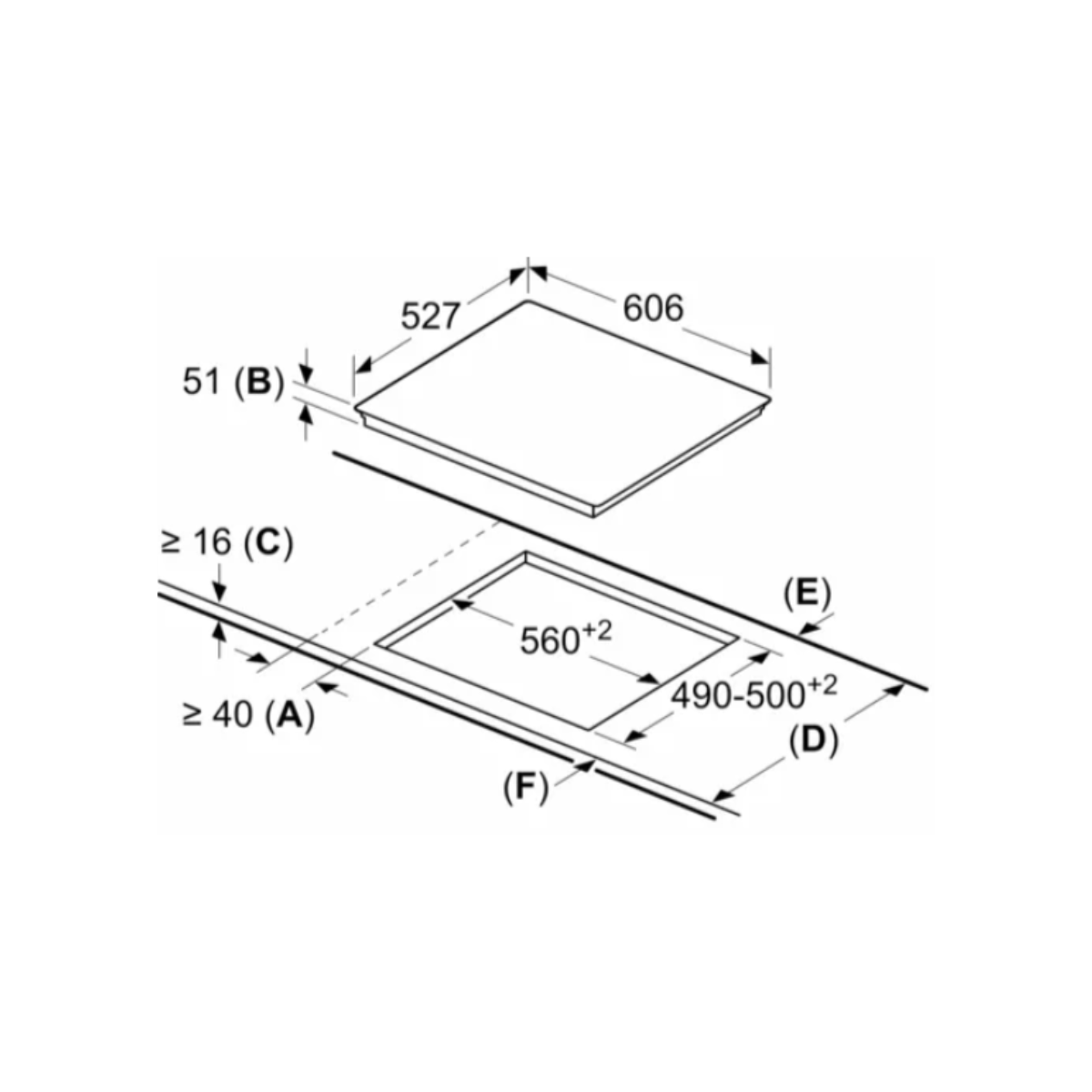 Cut-Out Dimensions (WxDxH): 560 x 490-500 x 51mm
