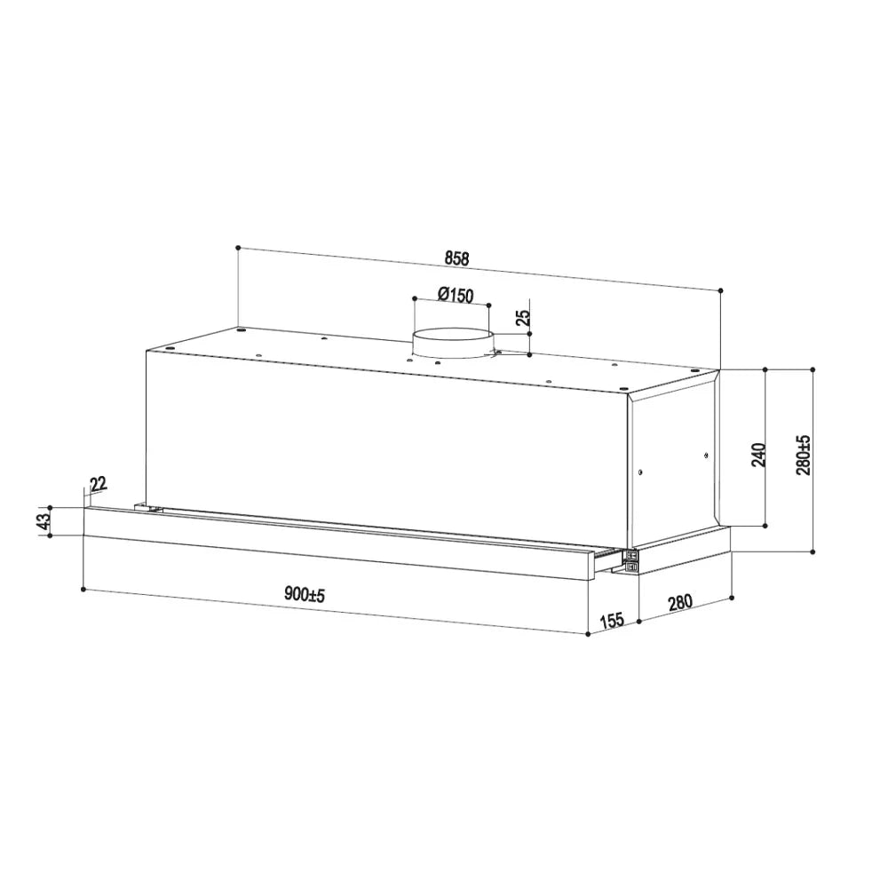 Product Cut Out Dimensions (LxWxH): 860 x 280 x 70mm