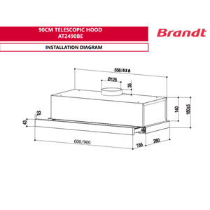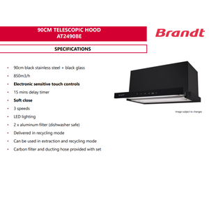 Brandt AT2490BE - 90cm Stainless Steel Telescopic Hood