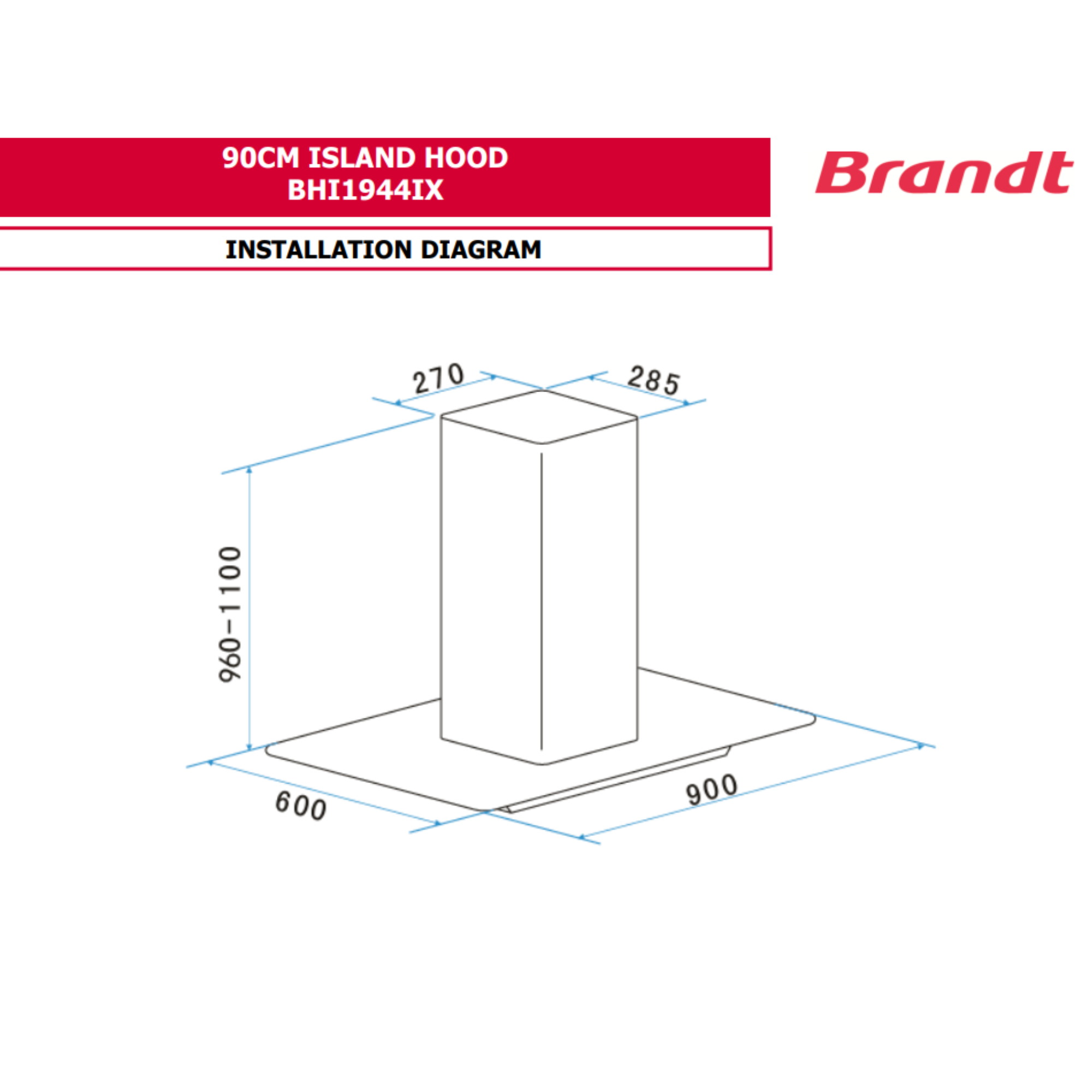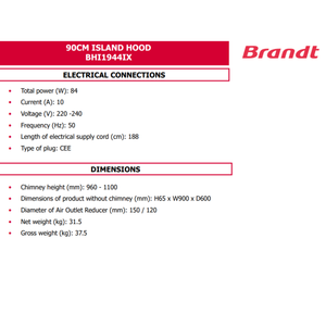 Brandt BHI1944IX - 90cm Island Hood