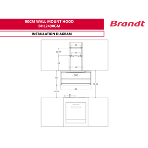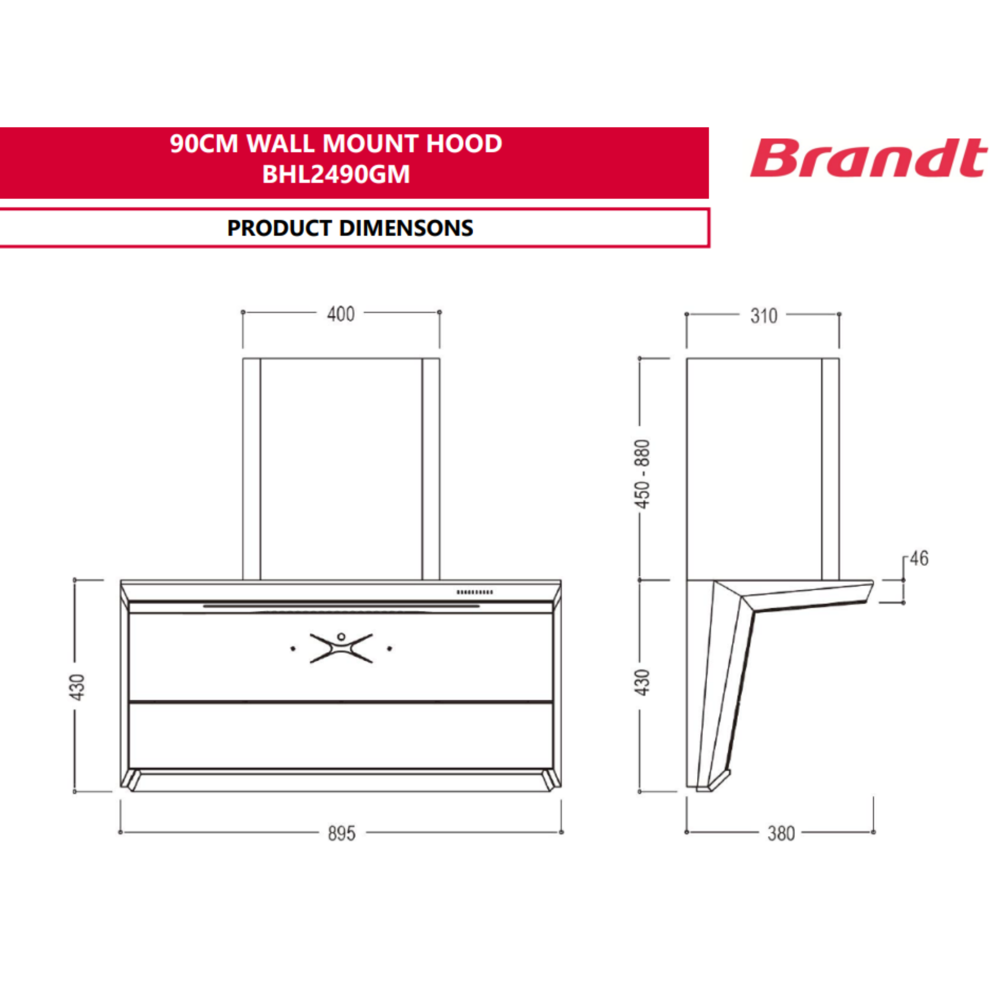 Brandt BHL2490GM - 90cm Chimney Hood with Auto Clean