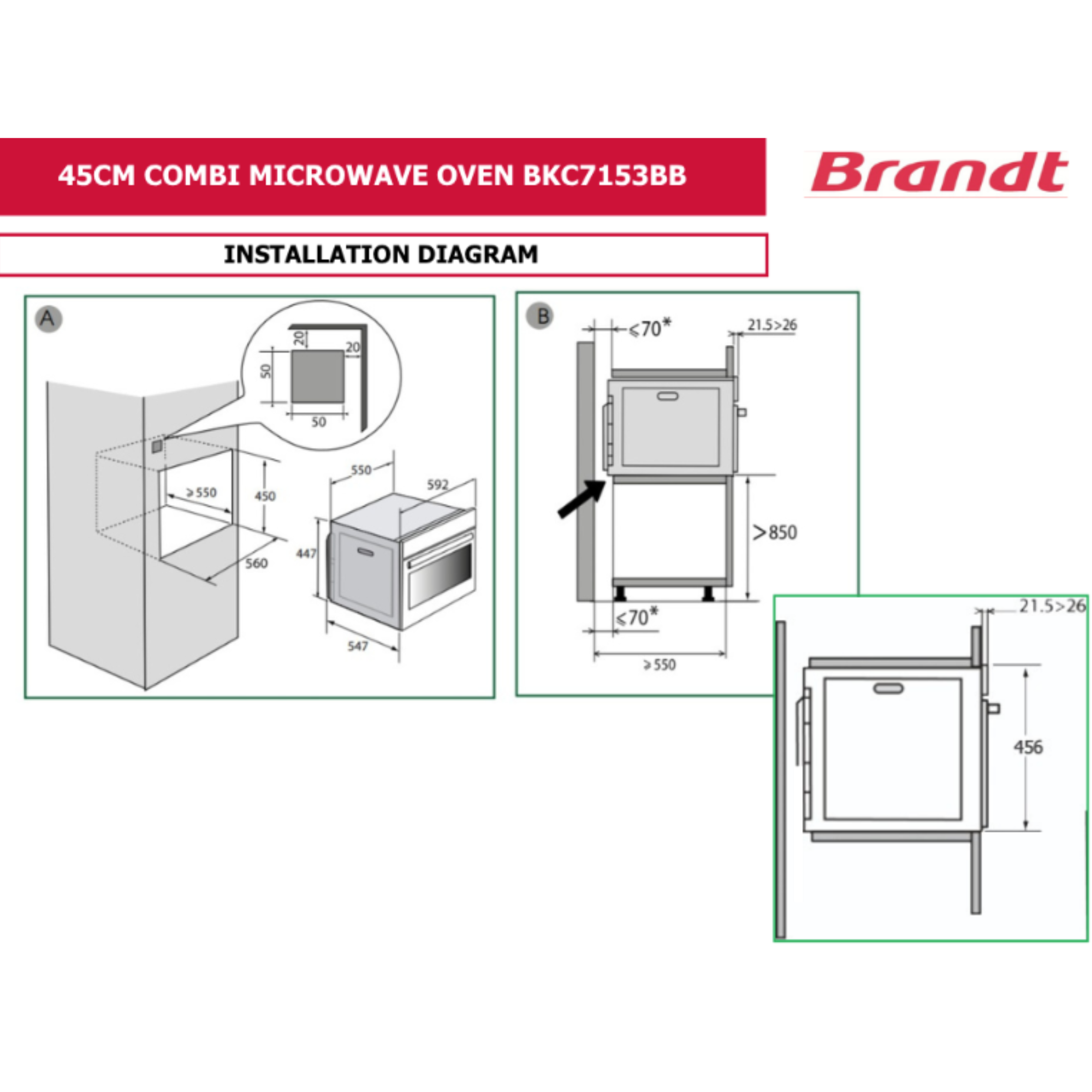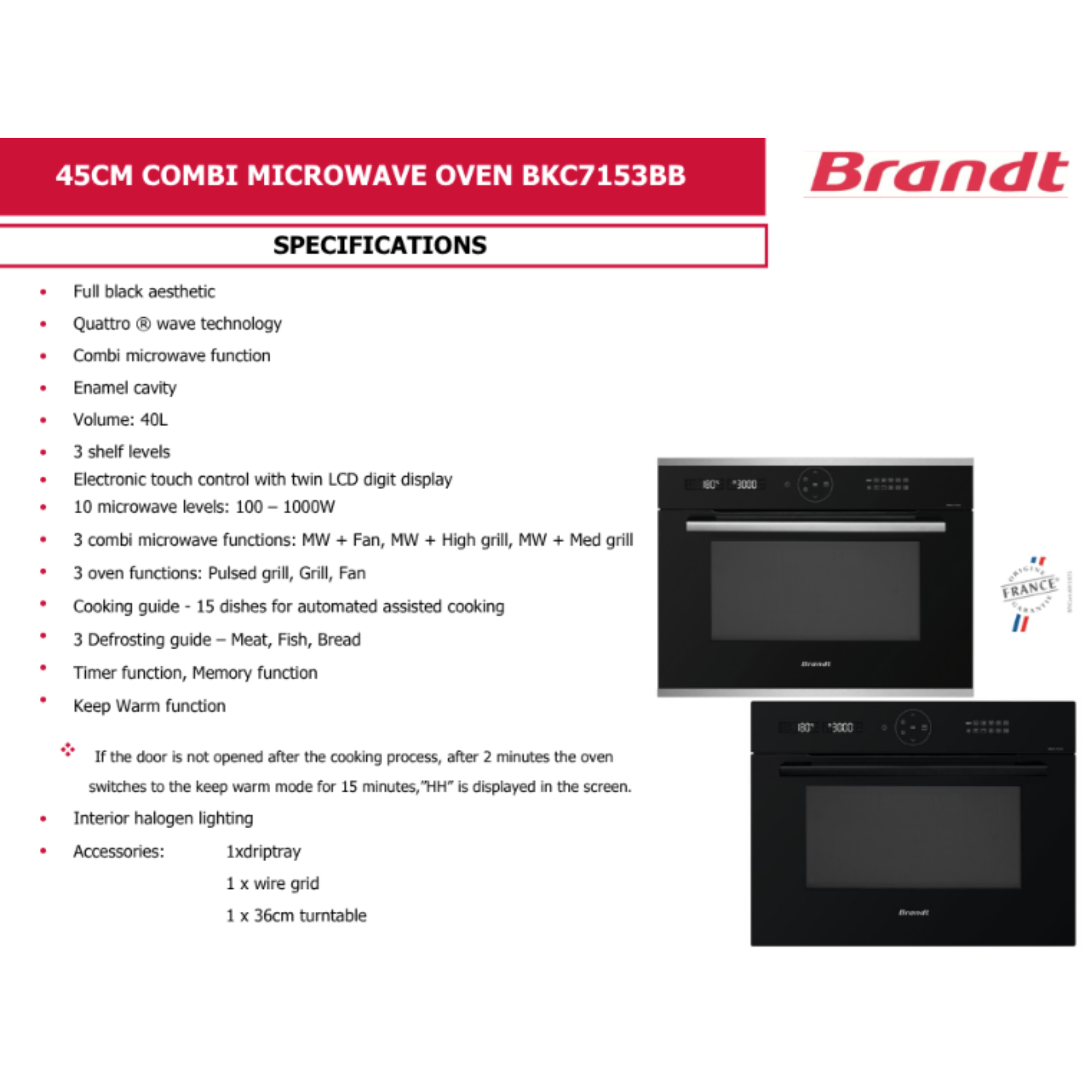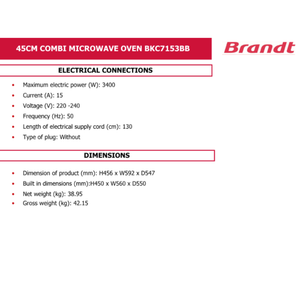 Brandt BKC7153BB / LX - 40L Built-In Microwave Oven