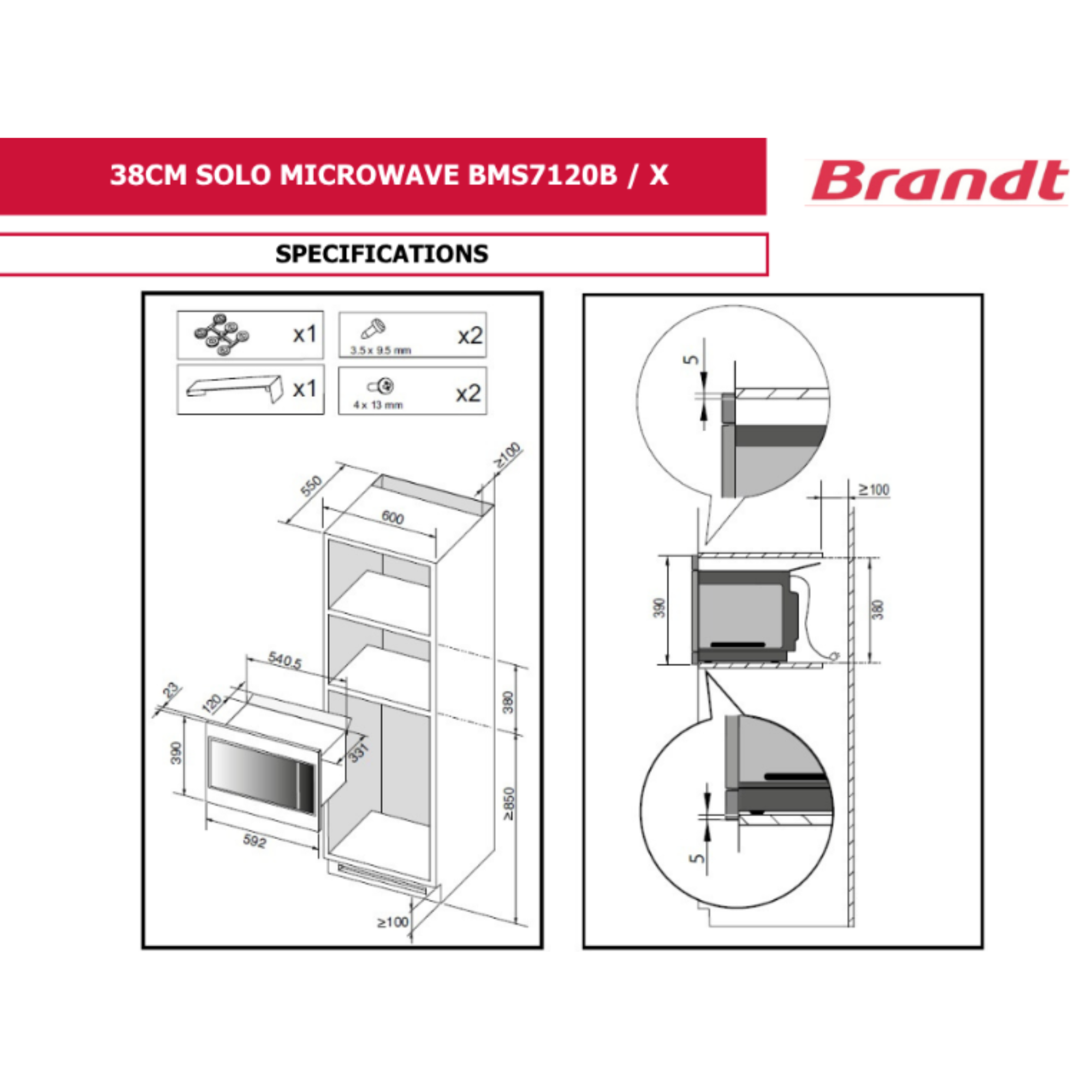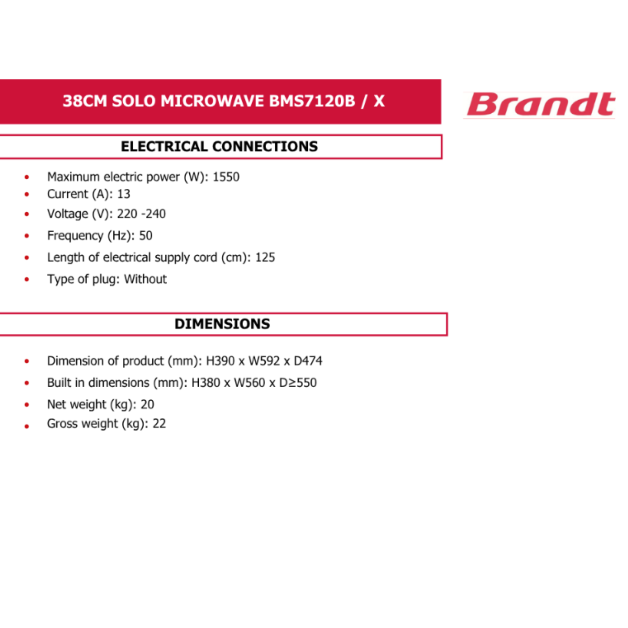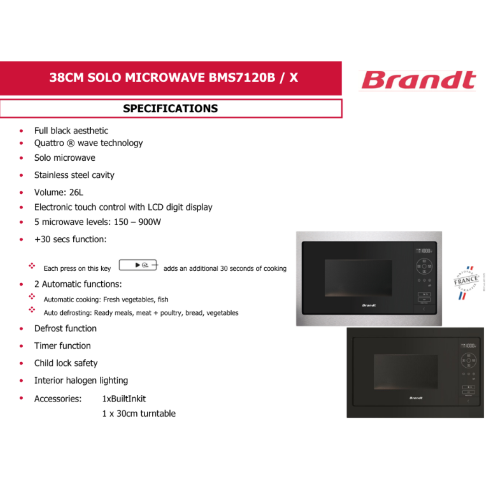 Brandt BMS7120B / X - 26L Built-In Microwave Oven