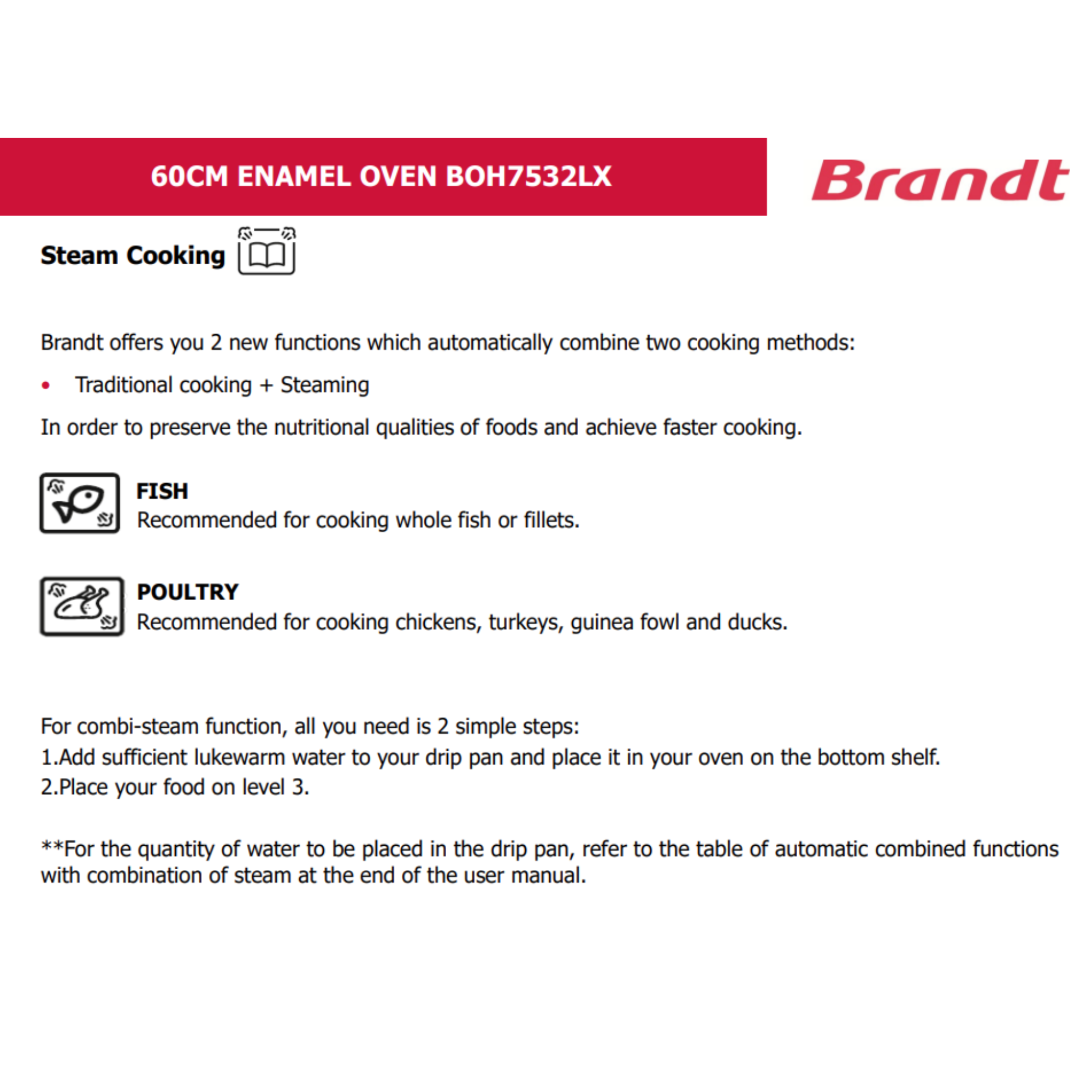- 5 cooking functions + Steam cooking