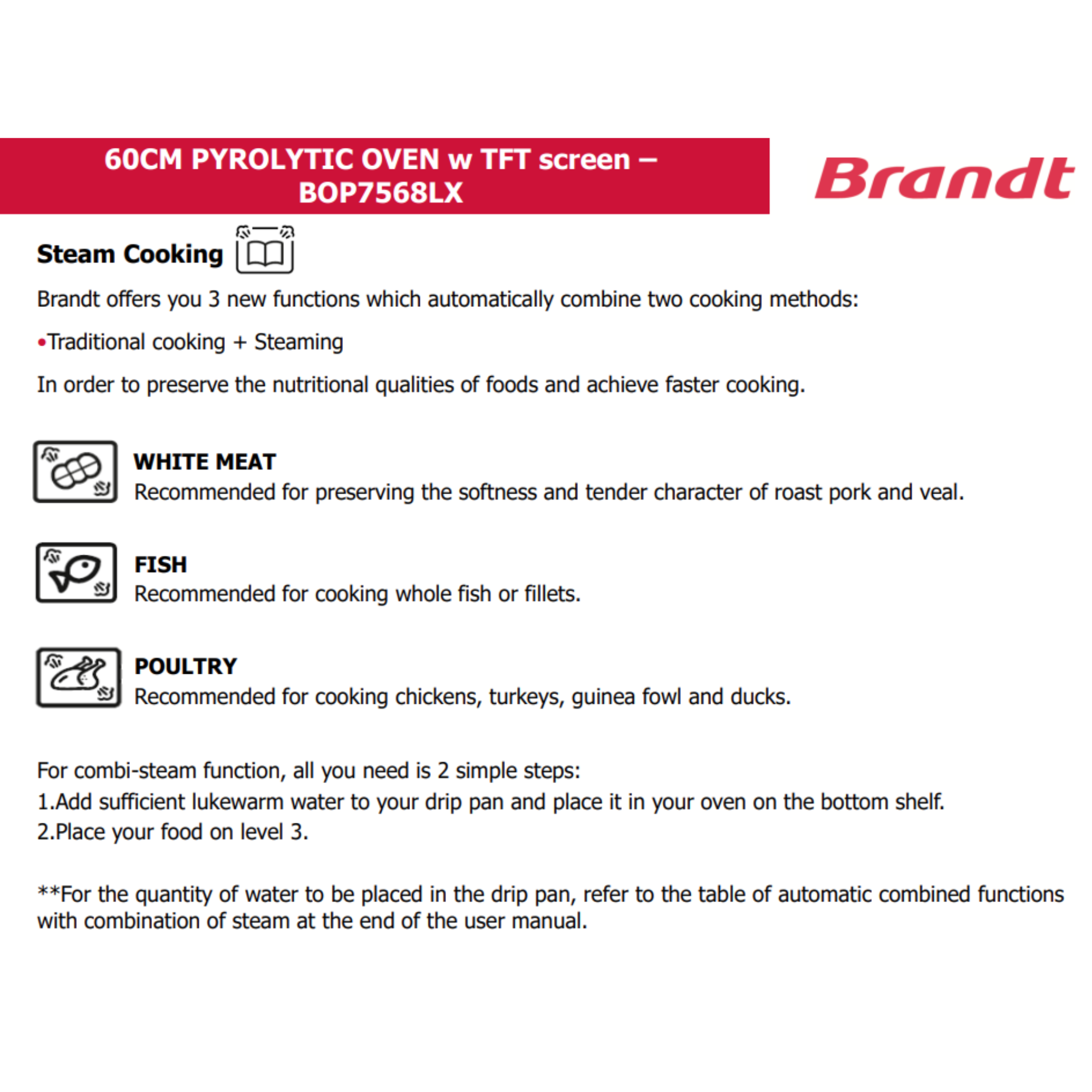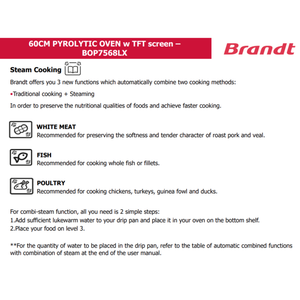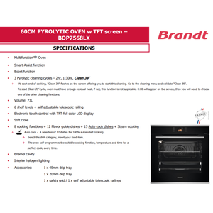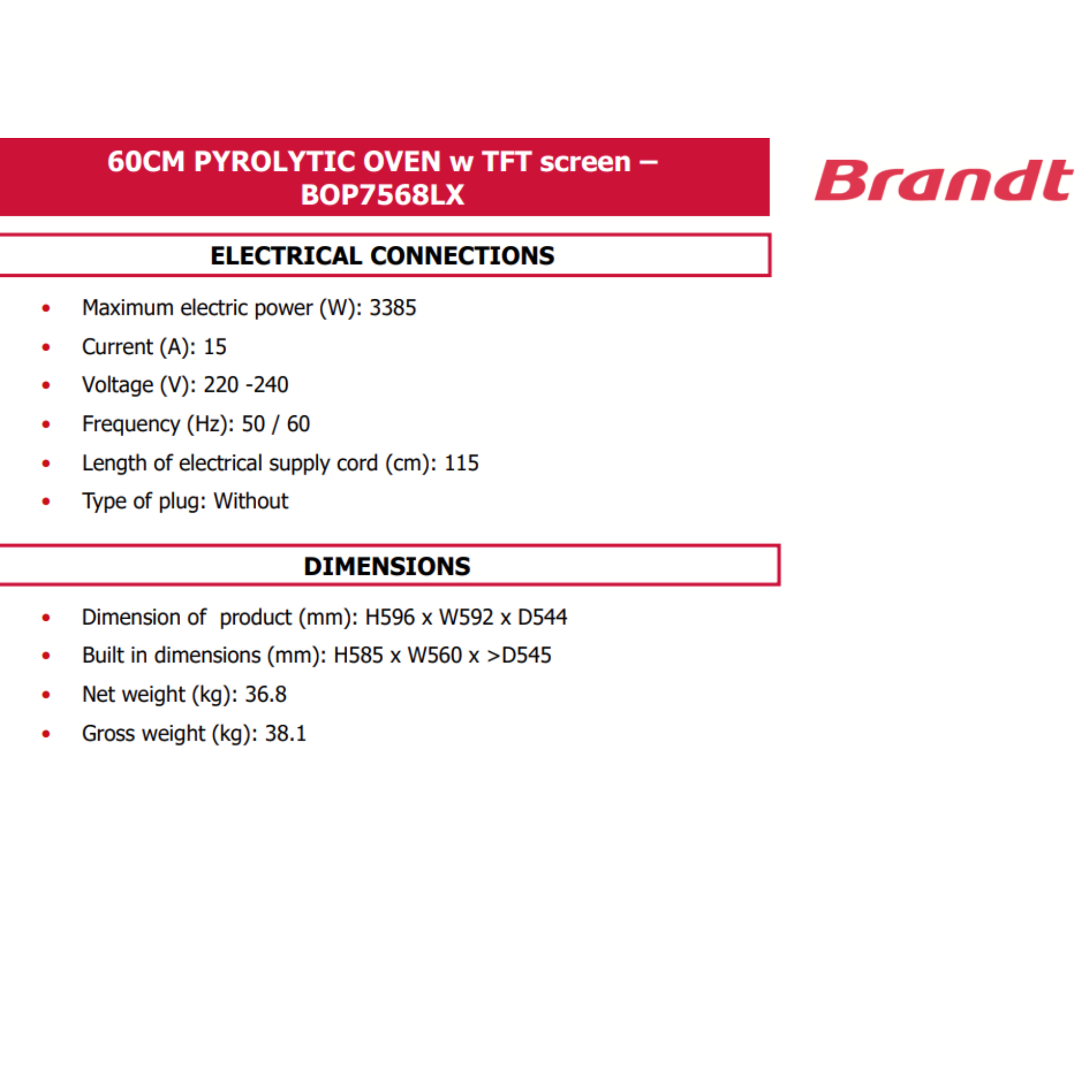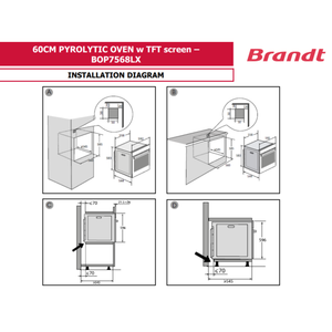 Brandt BOP7568LX - 73L 8 Functions Built-In Pyrolytic Oven