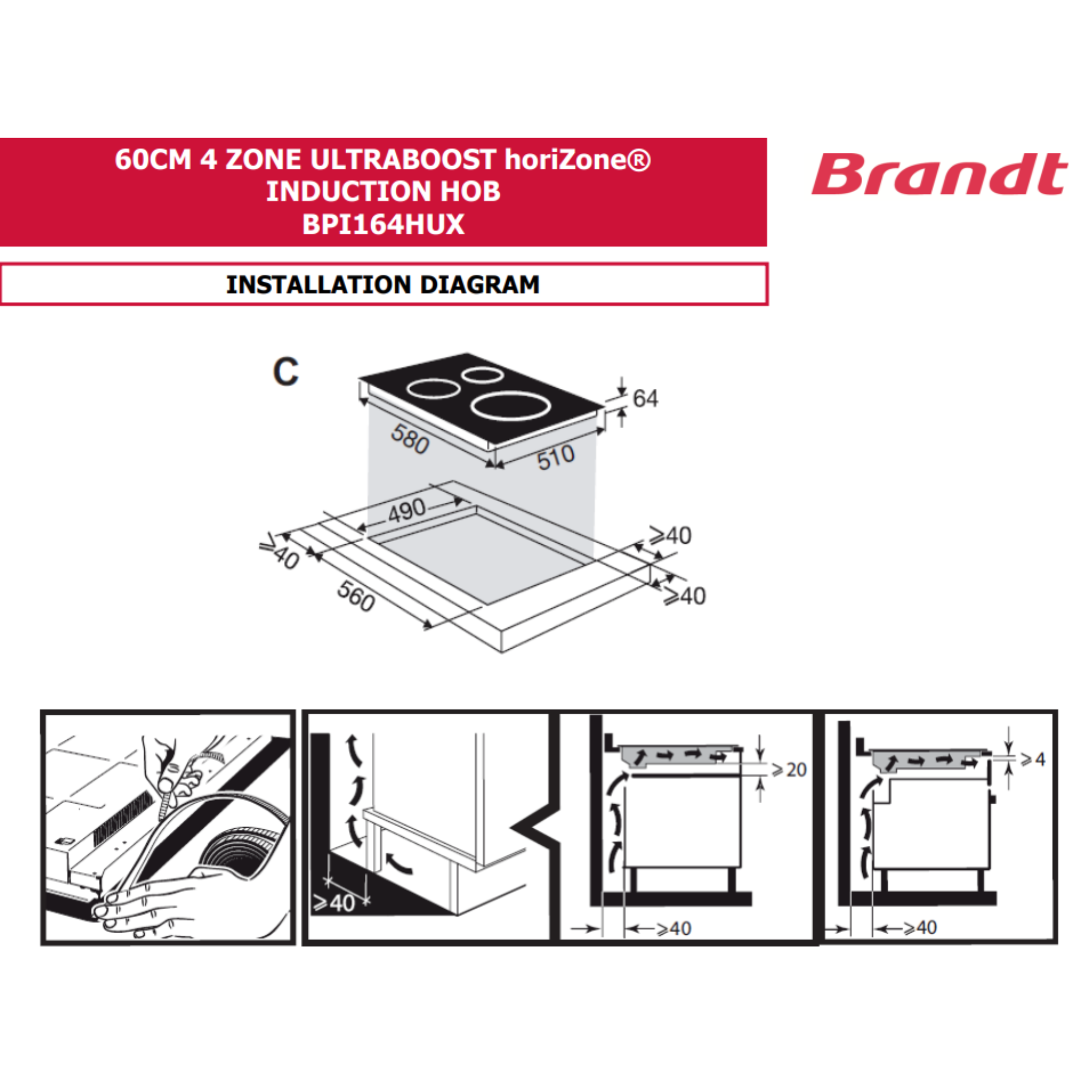 Brandt BPI164HUX - 58cm Induction Hob 4 Burners