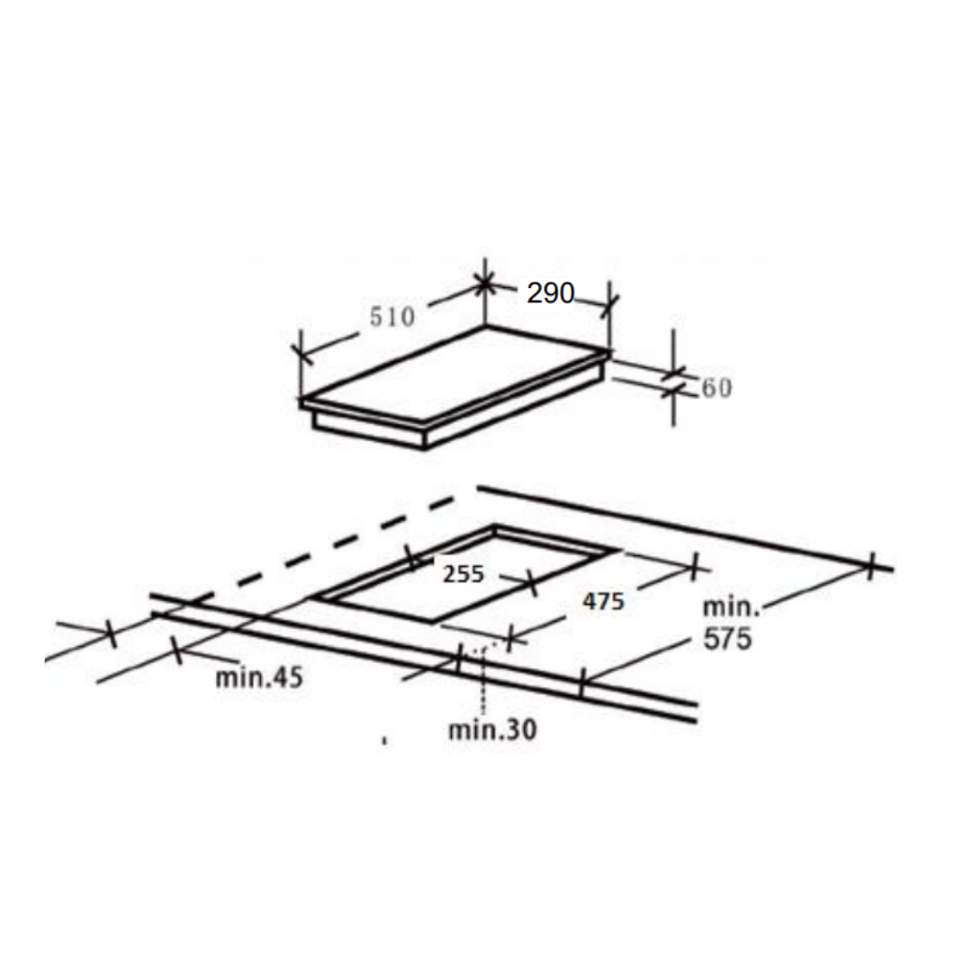 Cut-Out Dimensions (WxD): 255 x 475 mm