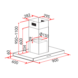EF CKLUNAIS - 90cm Stainless Steel Island Hood