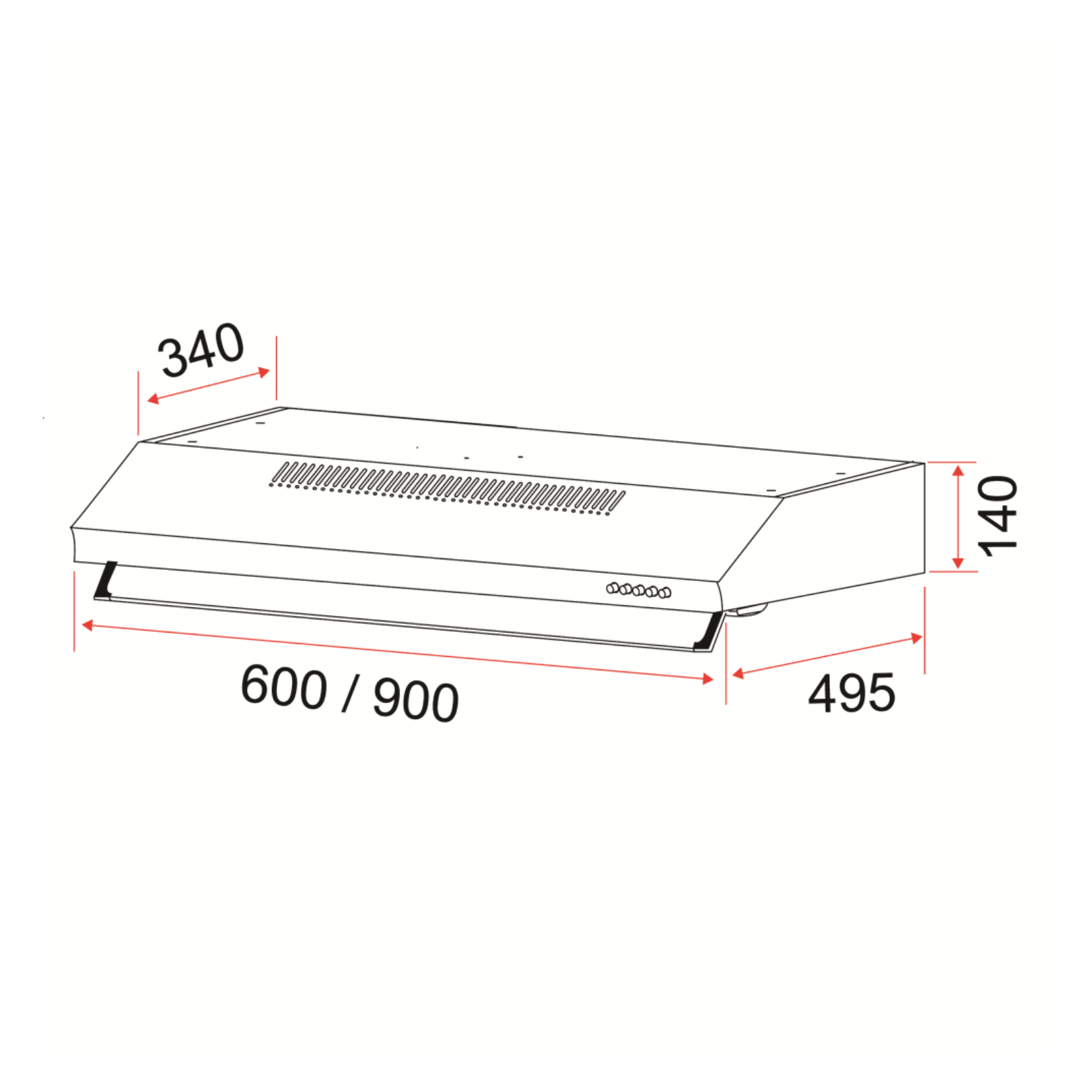 Product Dimensions (LxWxH) : 900 x 495 x 140mm