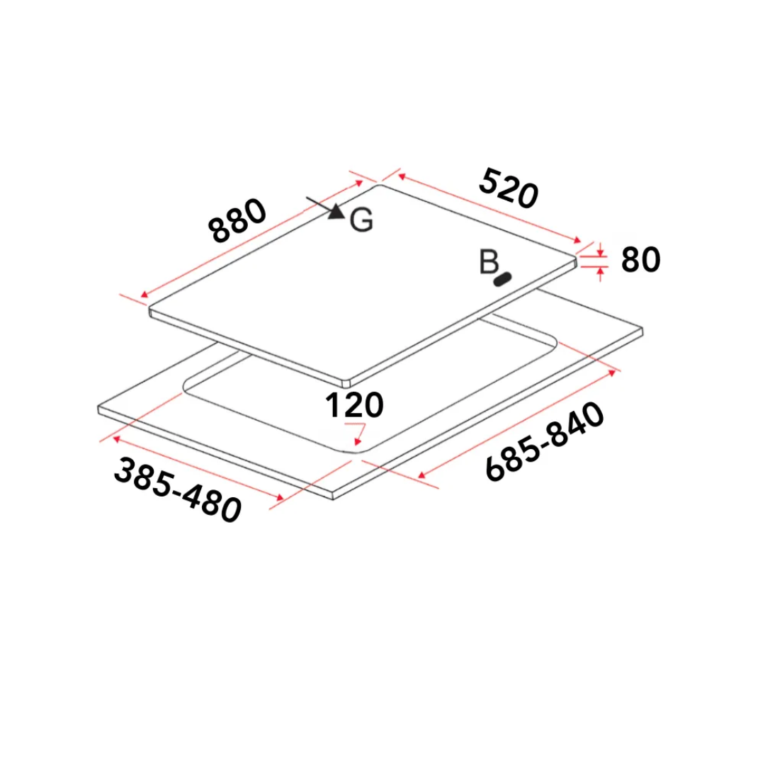 Cut-Out Dimensions (WxD): 685~840 x D385~480, R120mm