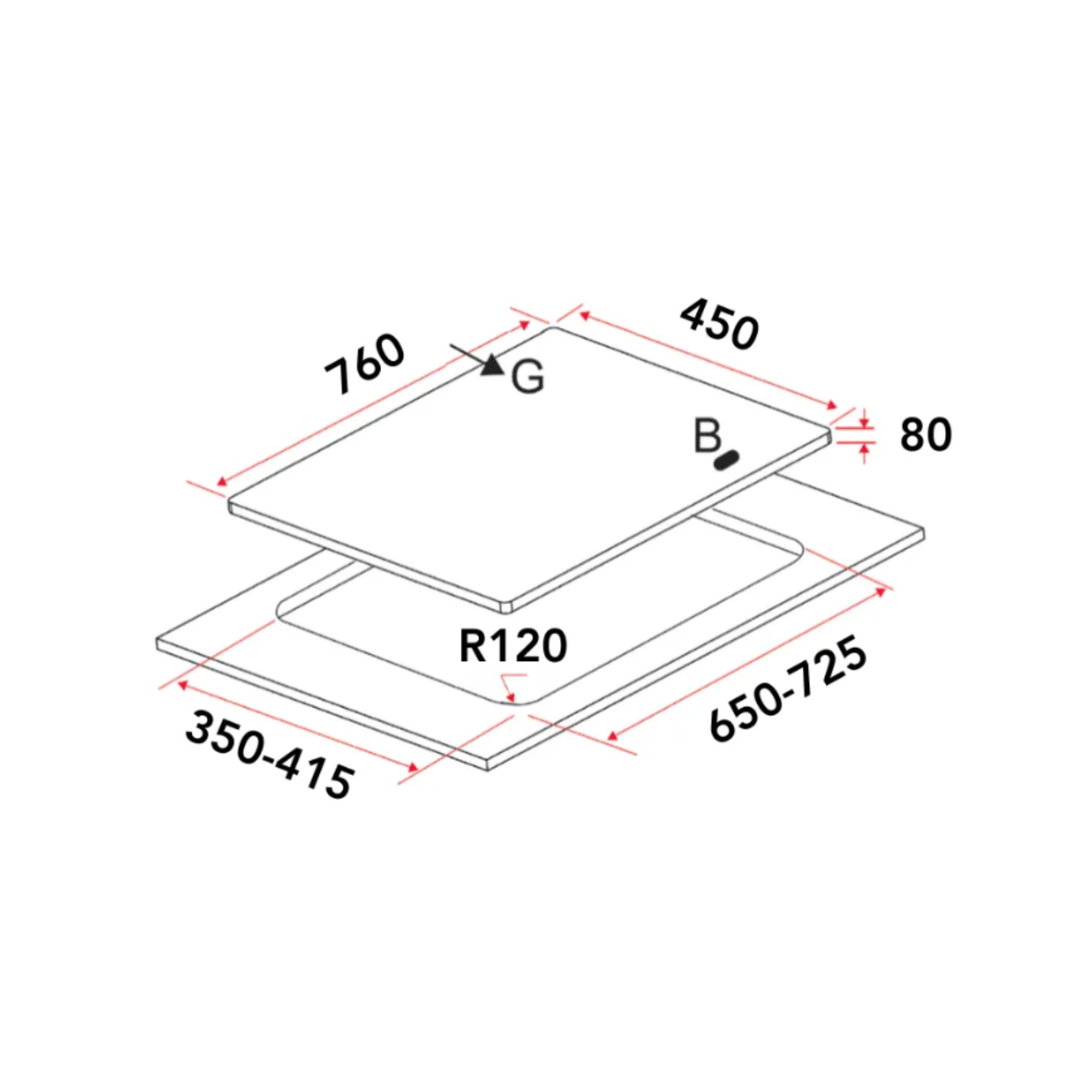 Cut-Out Dimensions (WxD): 650~725 x 350~415mm
