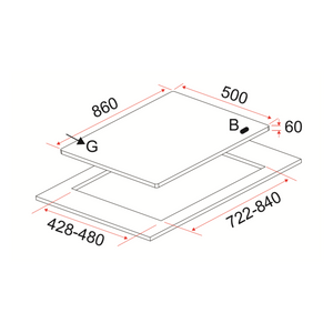 Cut-Out Dimensions (WxD): 722~840 x 428~480mm