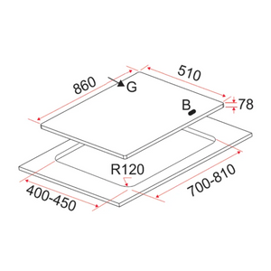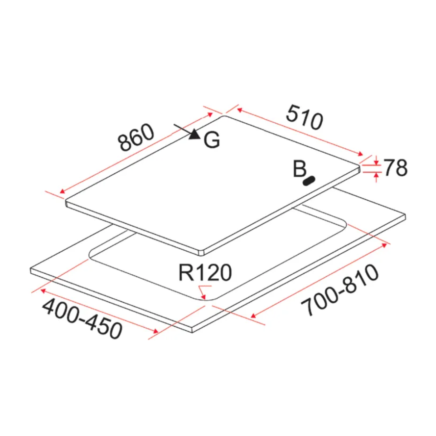 Cut-Out Dimensions (WxD): 700~810 x 400~450mm