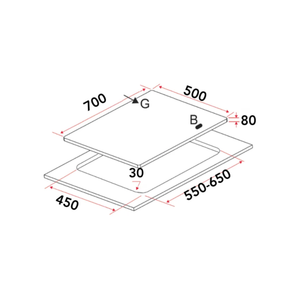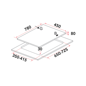 Cut-Out Dimensions (WxD): 650 - 725 x 350 - 415mm