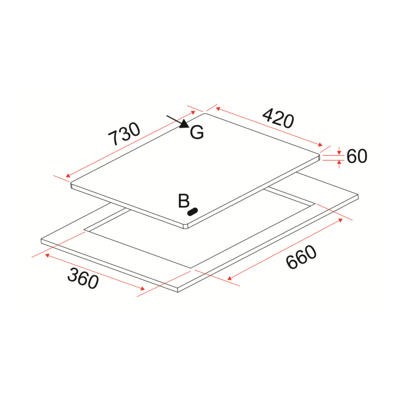 Cut-Out Dimensions (WxD): 660 x 360mm