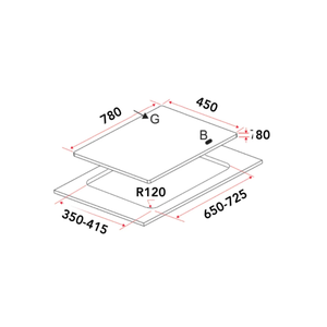 Cut-Out Dimensions (WxD): 650~725mm x 350~415mm
