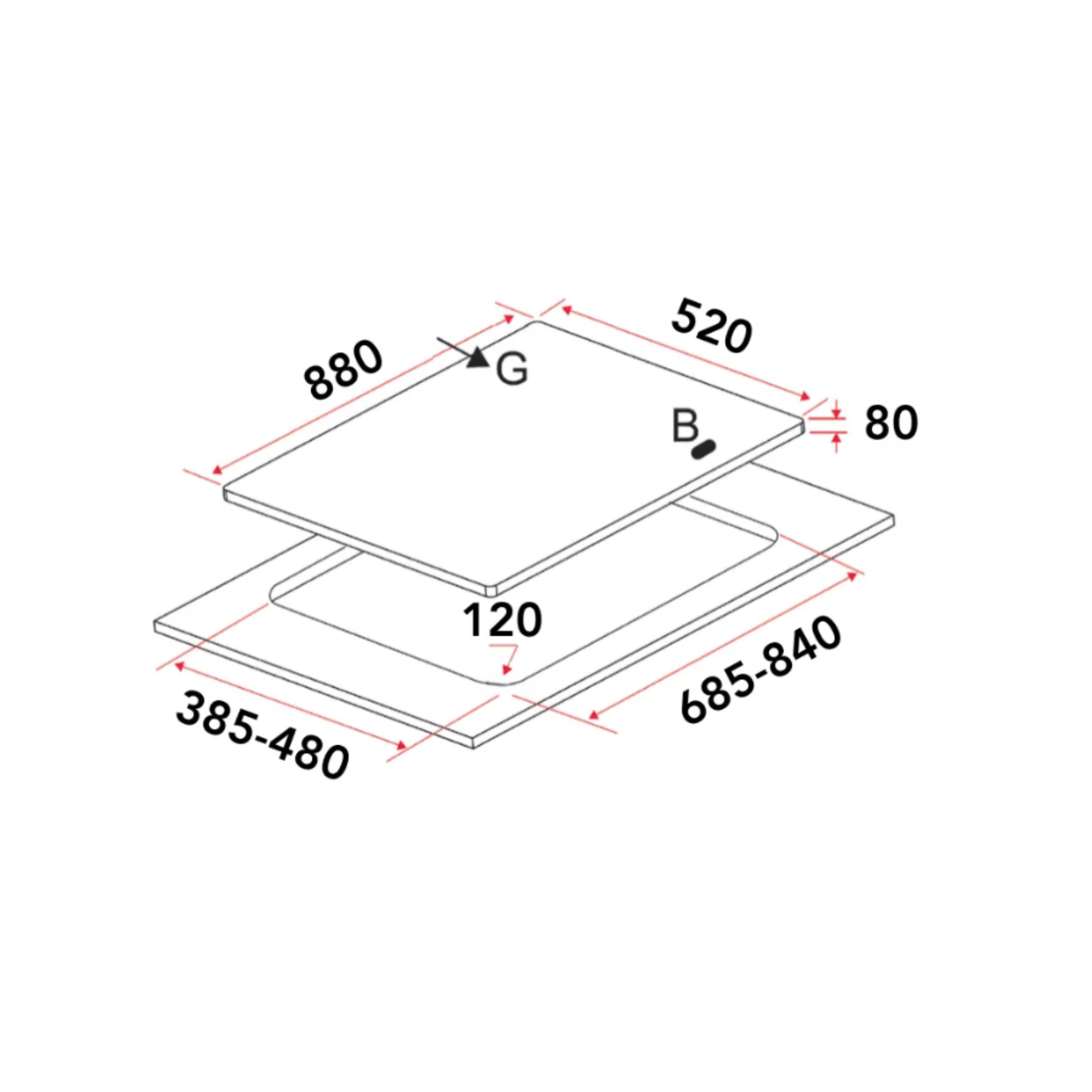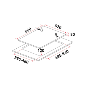 Cut-Out Dimensions (WxD): 685 - 840 x 385 - 480mm