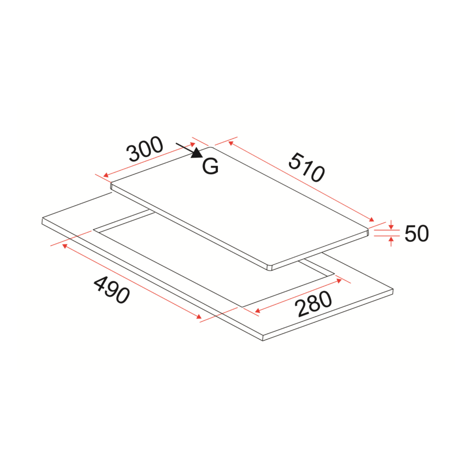 Cut-Out Dimensions (WxD): 280 x 490mm