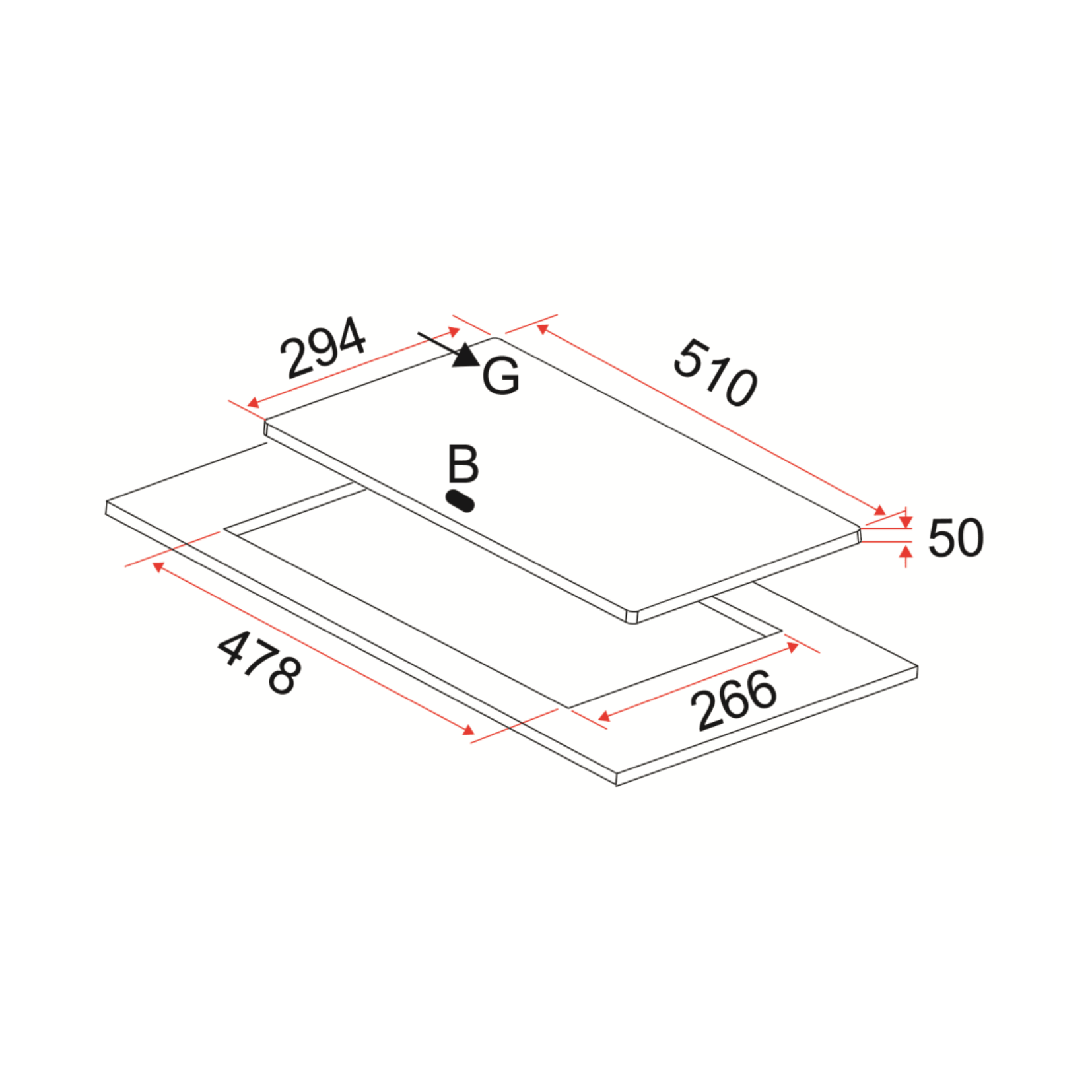 Cut-Out Dimensions (WxD): 266 x 478mm