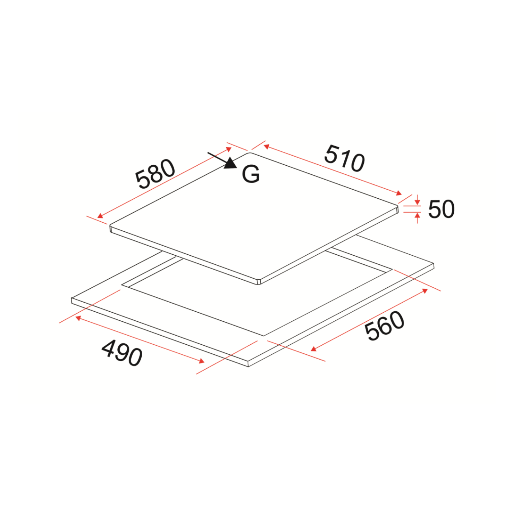 Cut-Out Dimensions (WxD): 560 x 490mm