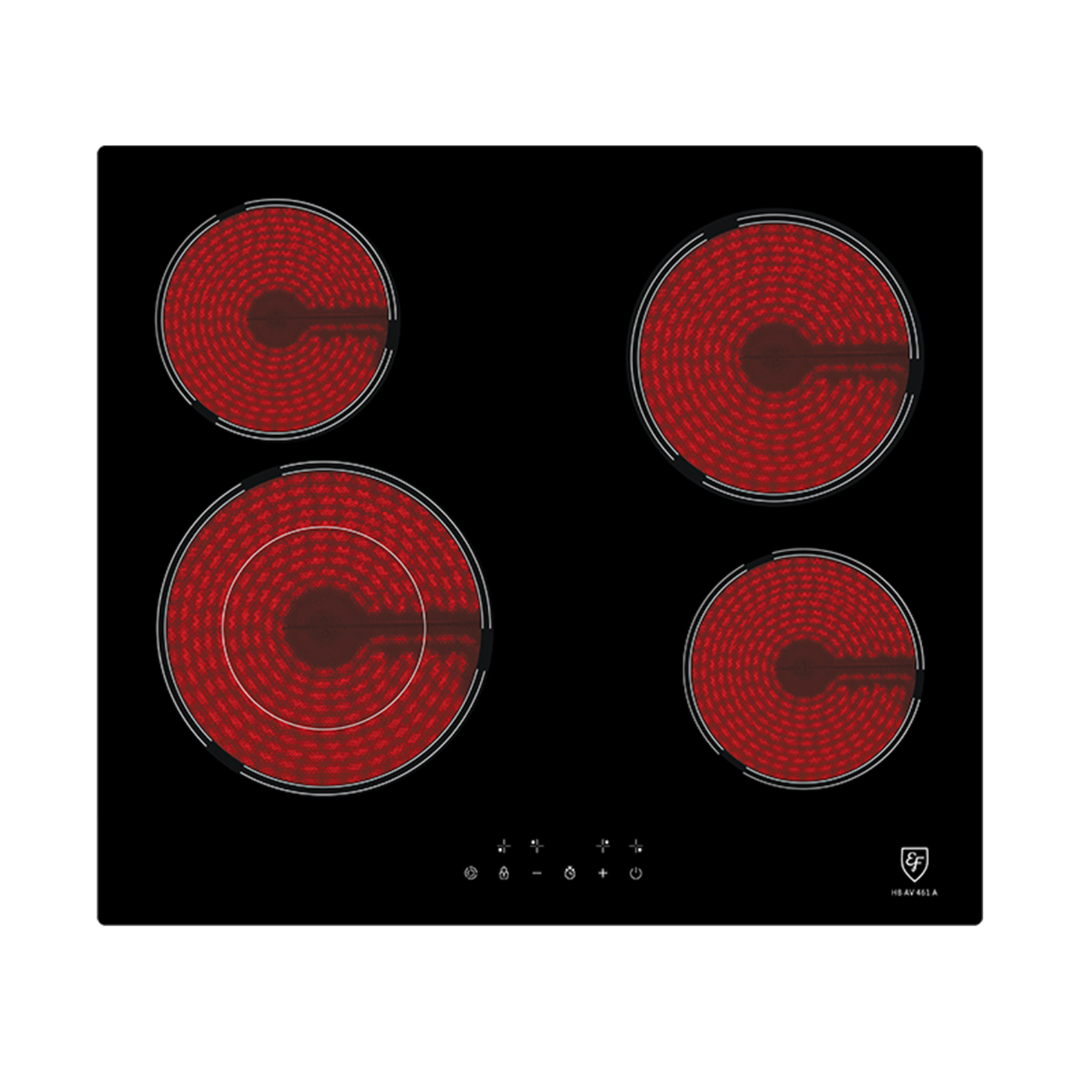 The EF HBAV461A is a 60cm built-in vitroceramic hob featuring four radiant cooking zones crafted from German SCHOTT CERAN glass. Its sleek design and efficient performance make it a suitable choice for modern kitchens.