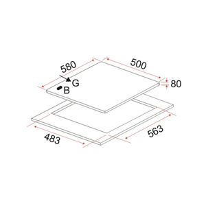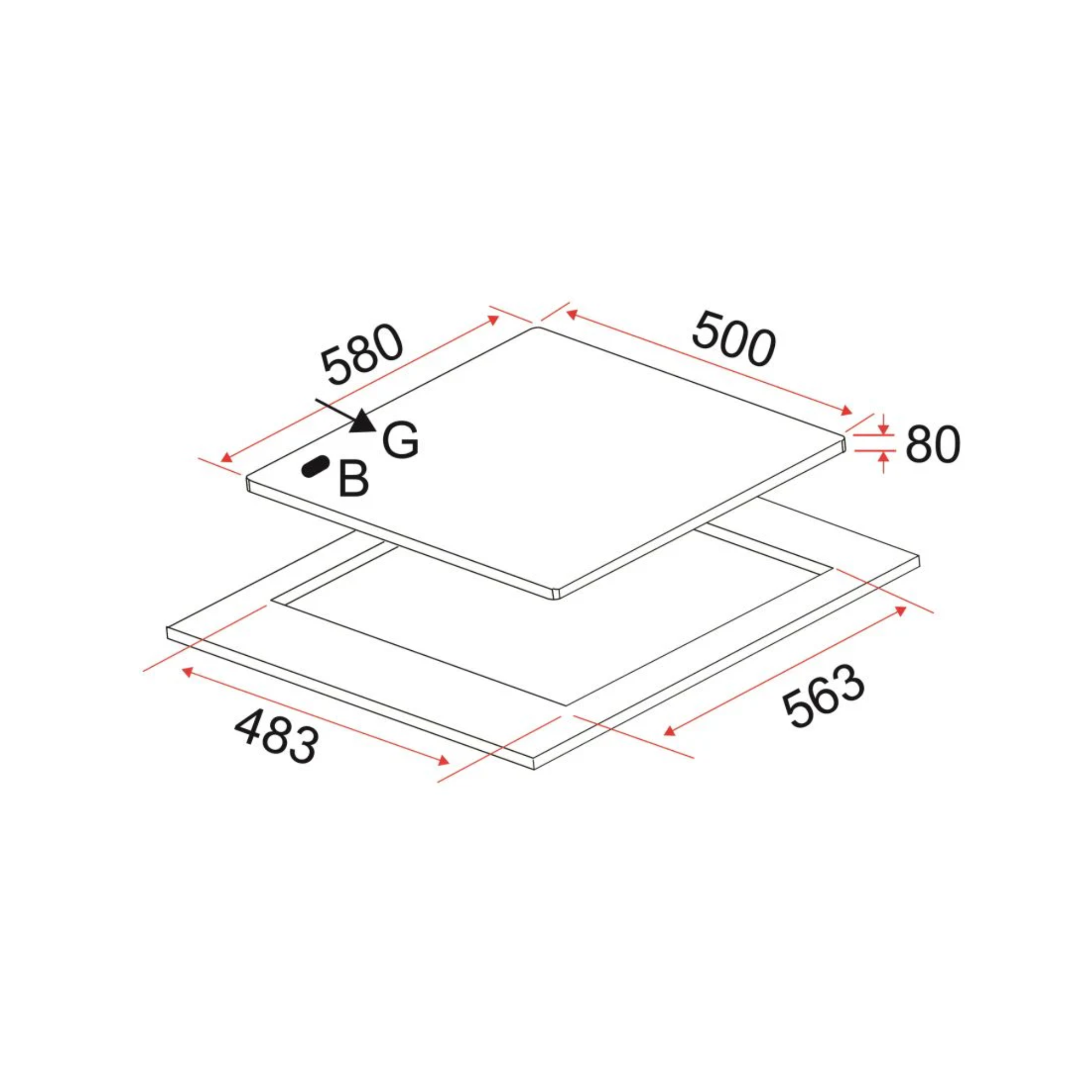 Cut-Out Dimensions (WxD): 563 x 483 mm