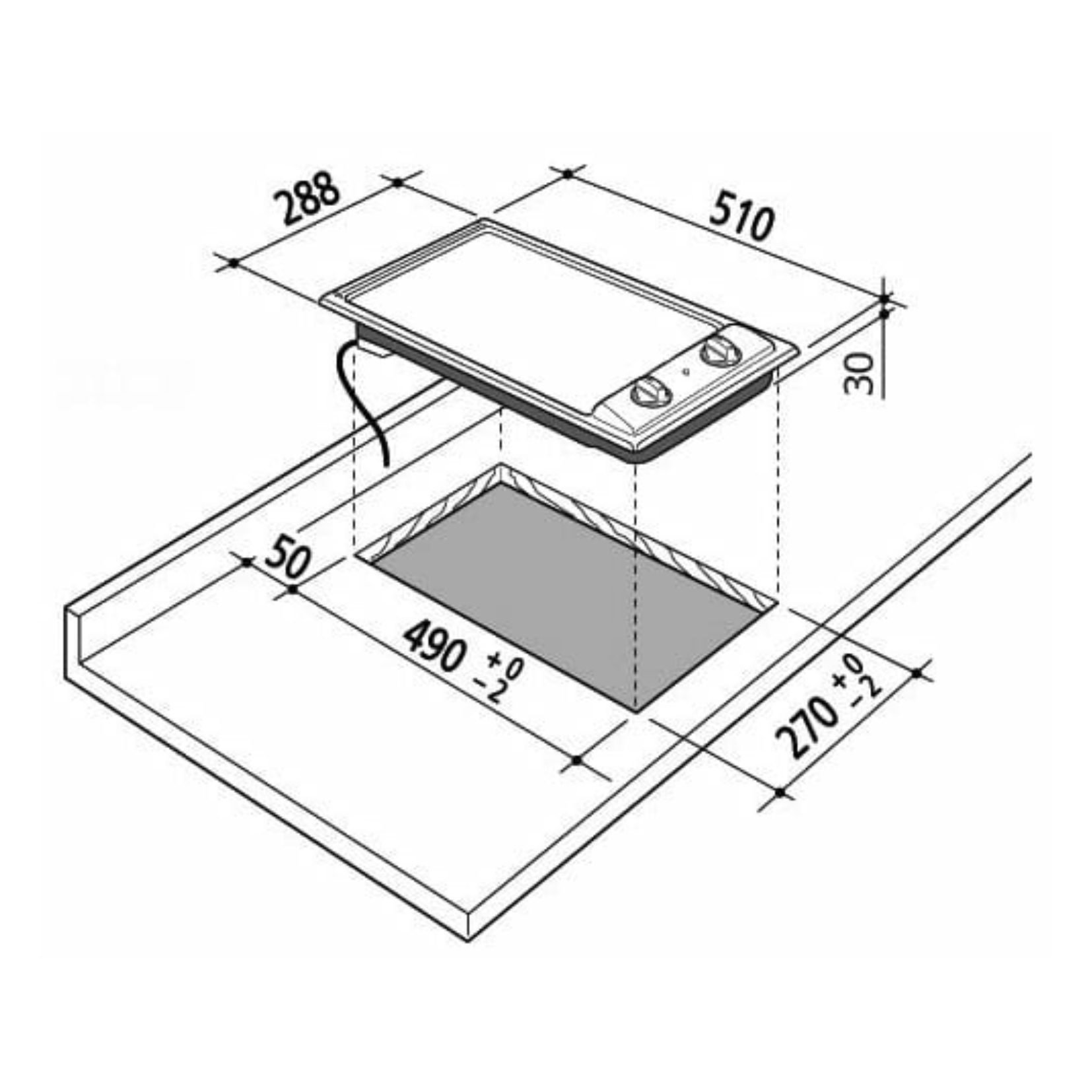 Cut-Out Dimensions (WxD): 270 x 490 mm