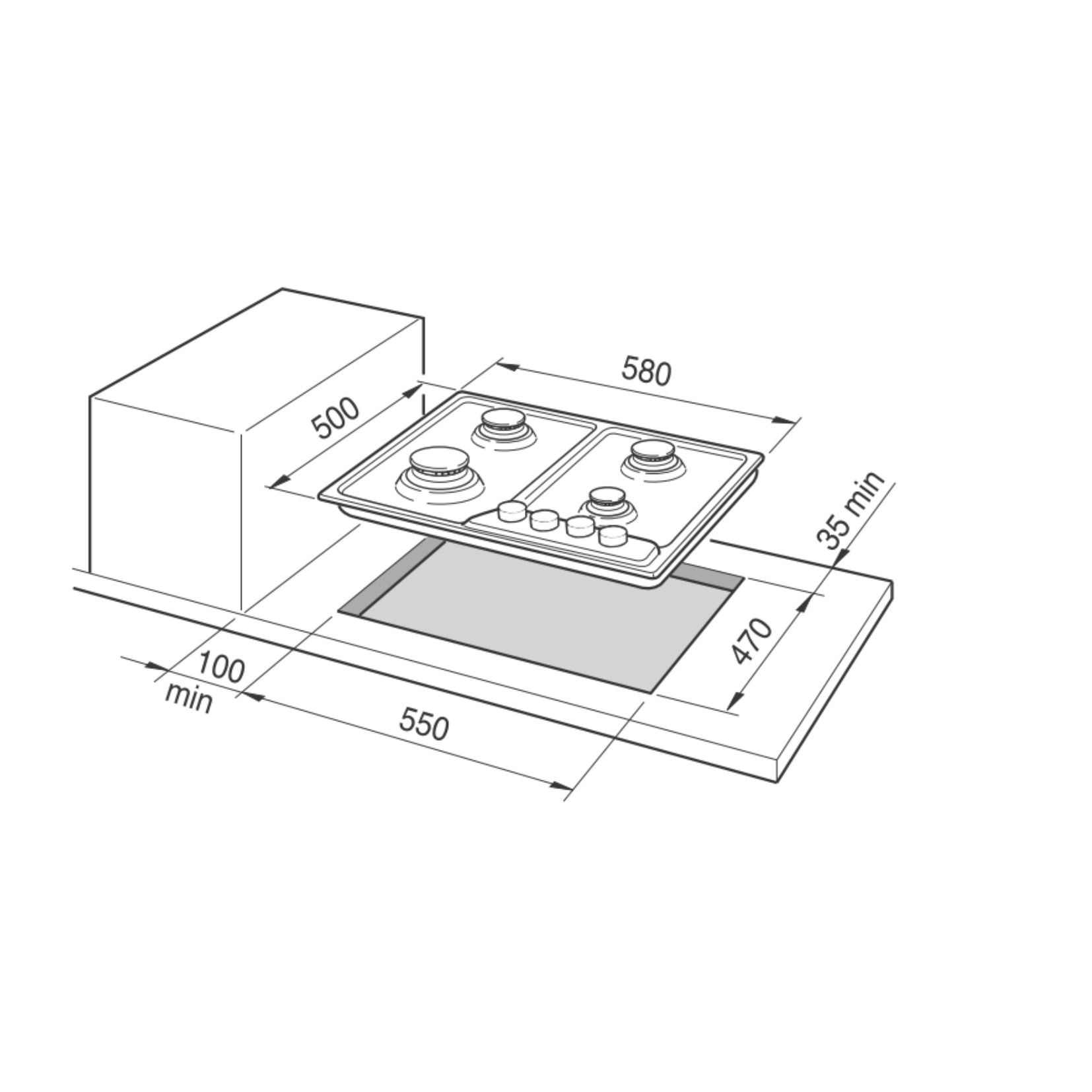 Cut-Out Dimensions (WxD): 550 x 470 mm