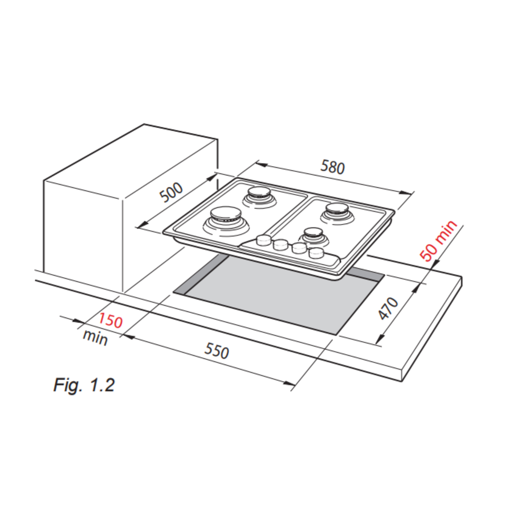 Cut-Out Dimensions (WxD): 550 x 470 mm