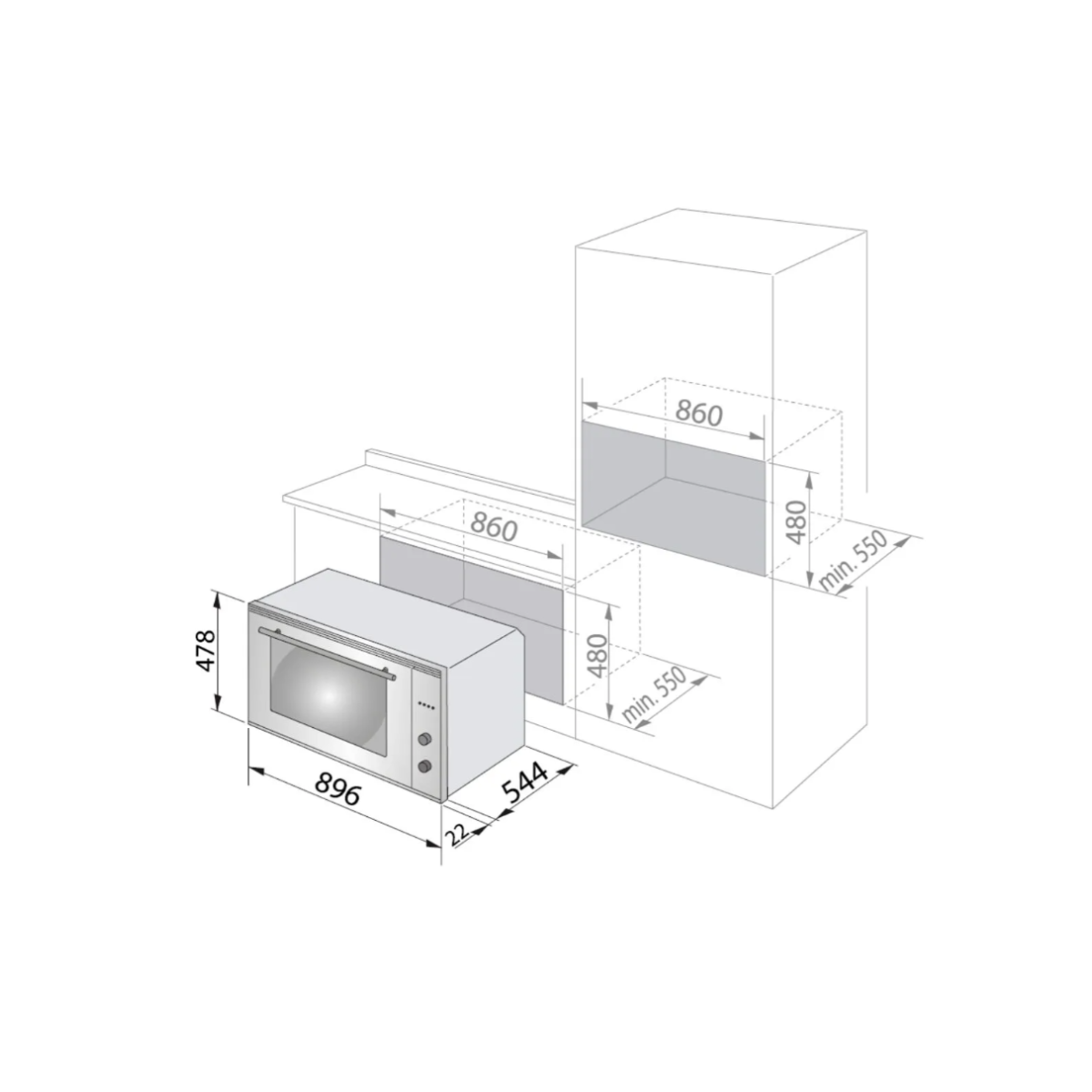 Cut out size: W860 x H480 x D550mm