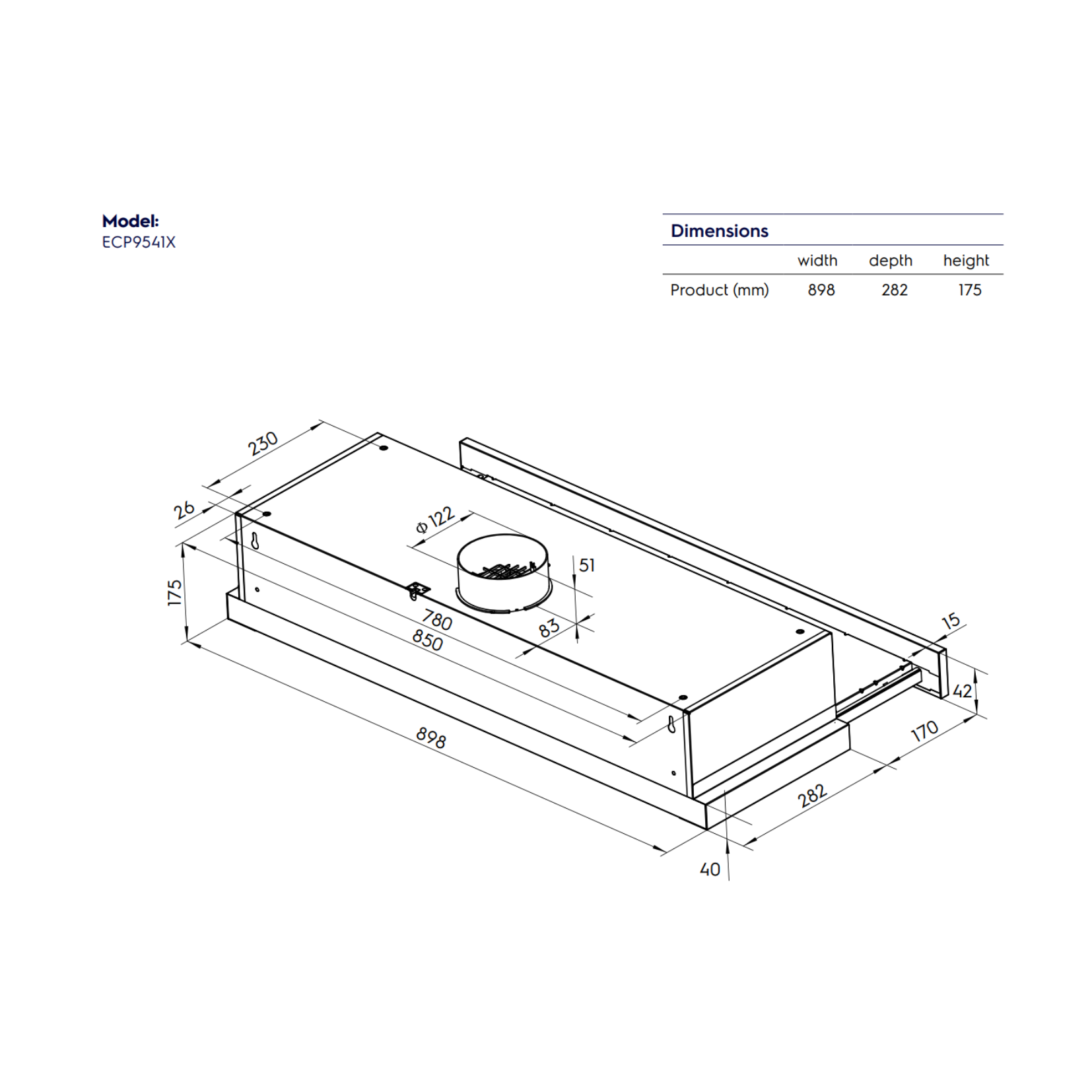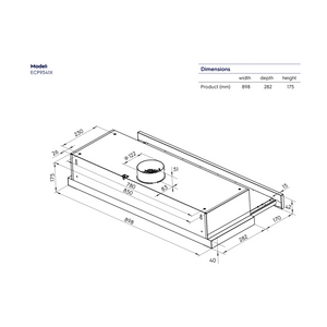 Enhance your kitchen with the 90cm UltimateTaste 300 pull-out extractor hood, ECP9541X. Adjust between two fan speeds for optimal cooking conditions. Its energy-efficient centrifugal motor ensures effective ventilation, while the 5-layer filter efficiently removes grease. Safety is prioritized with an auto thermal cut-out switch for added peace of mind.