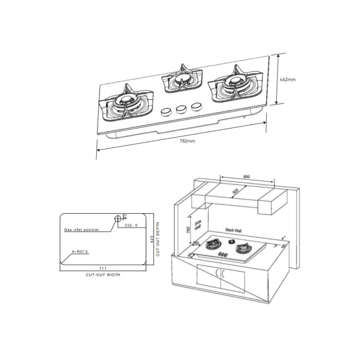 Cut-Out Dimensions (WxD): 711 x 425 mm