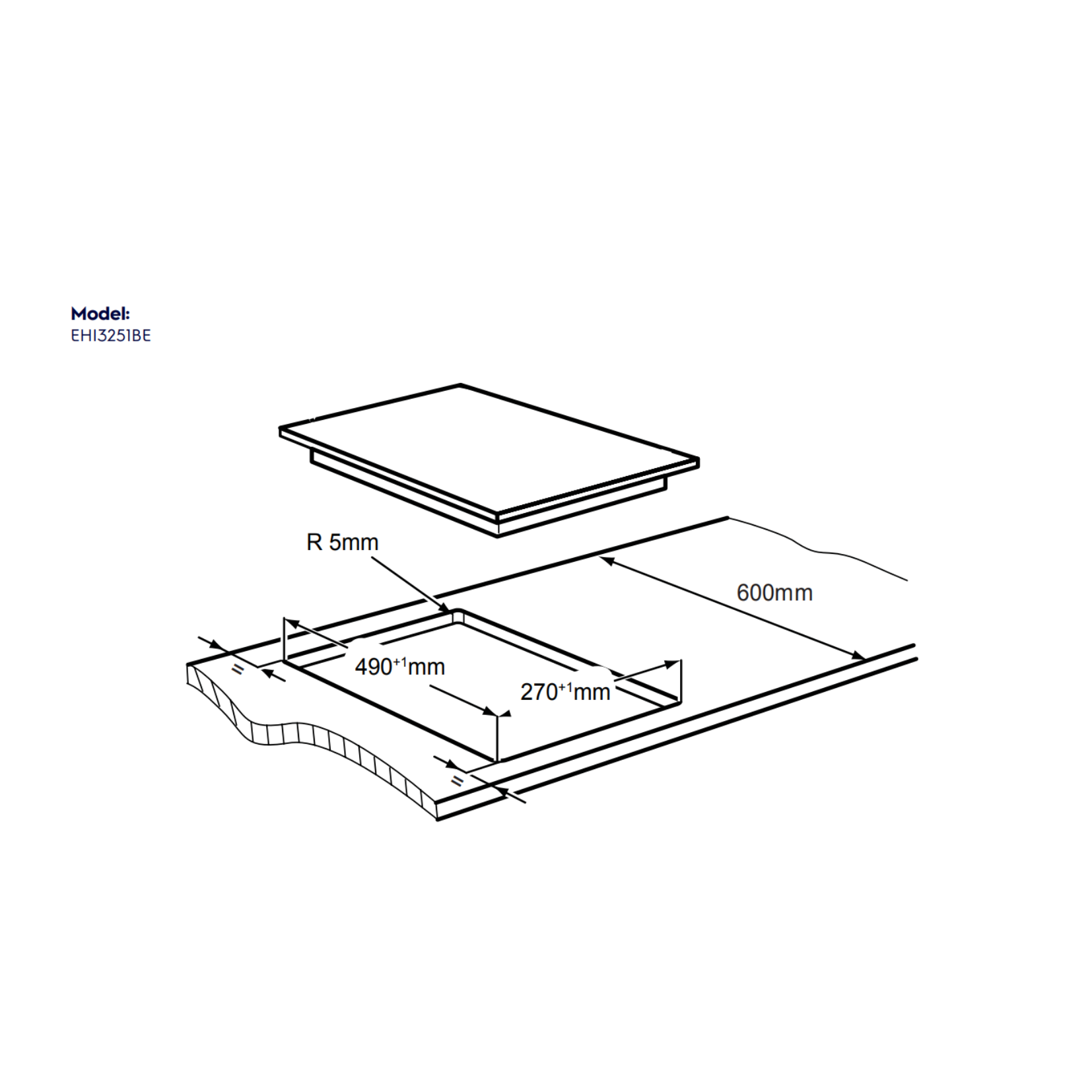 Cut-Out Dimensions (WxD): 270 x 490 mm