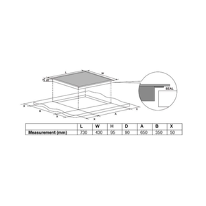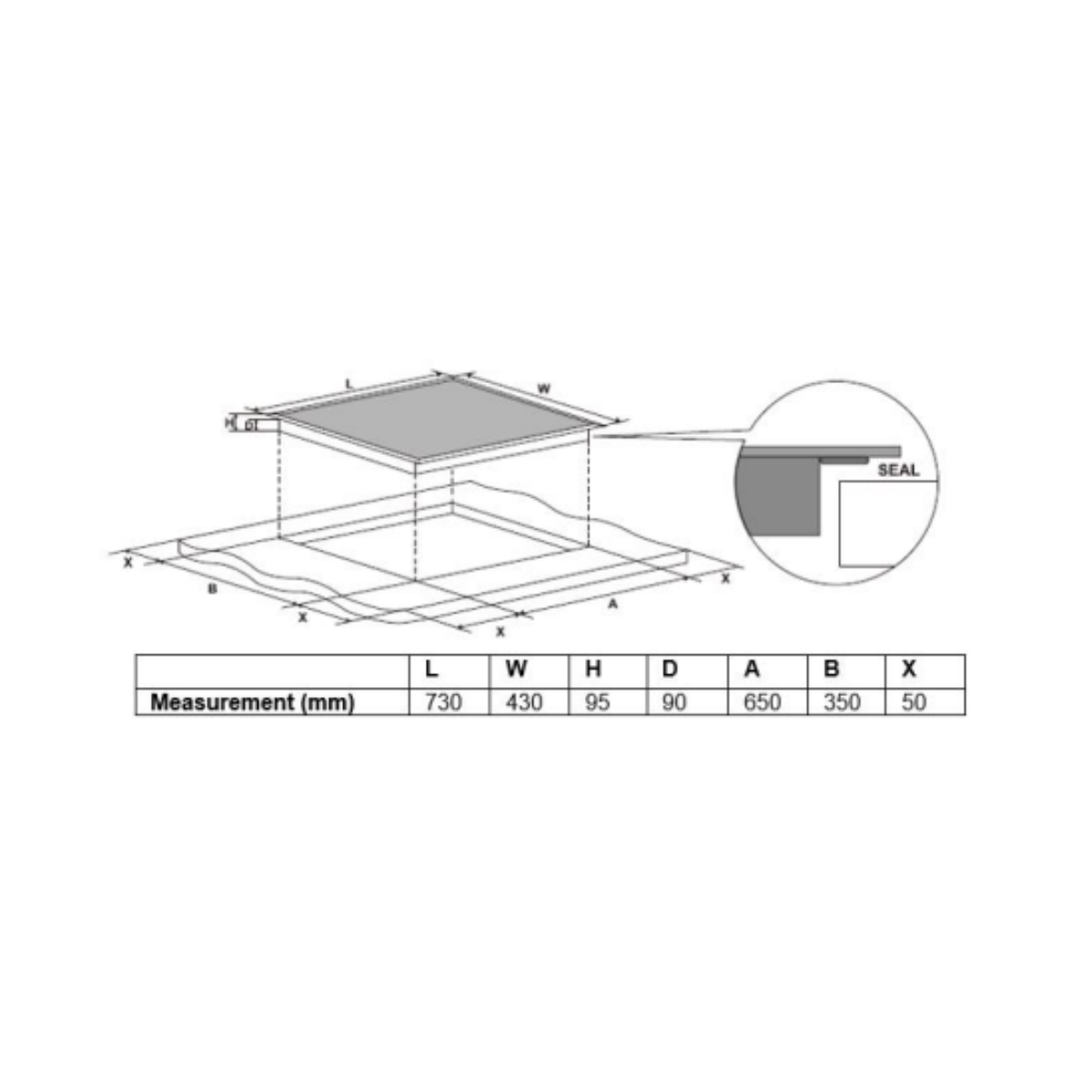 Cut-Out Dimensions (WxD): 650 x 345mm
