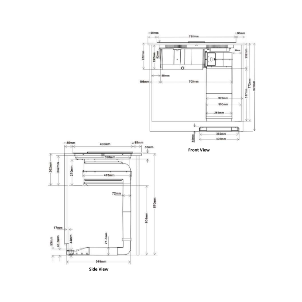 Cut-Out Dimensions (WxD): 655 - 720 x 345 - 420mm