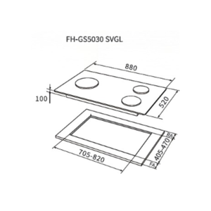 Cut-Out Dimensions (WxD): 705 - 820 x 405 - 470 mm