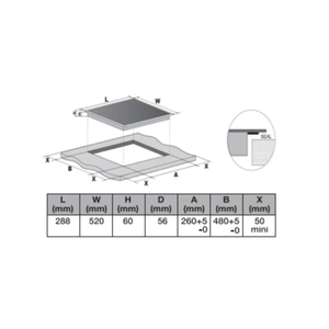 Cut-Out Dimensions (WxD): 260 x 480mm